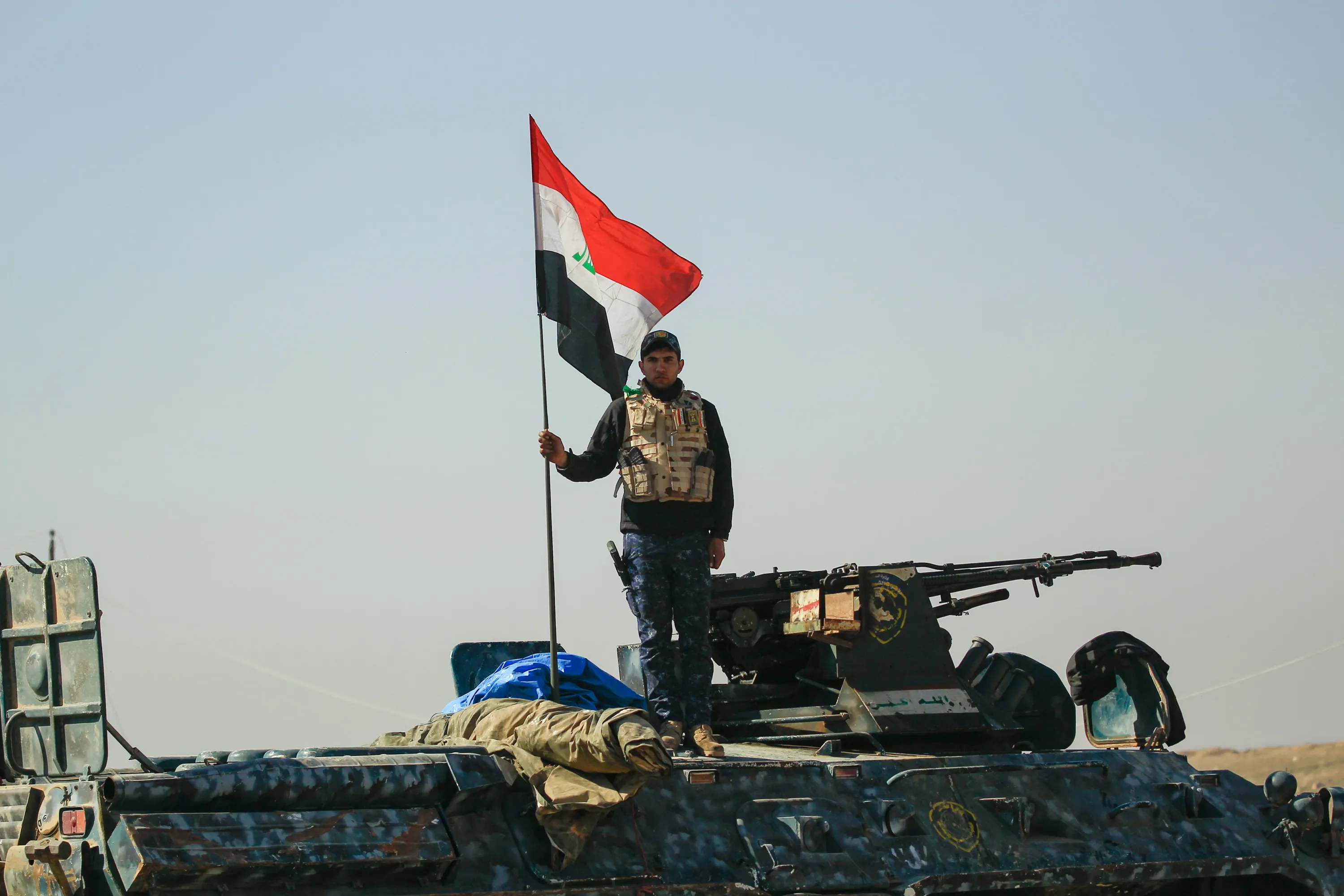 A Federal police member stands ontop of the armoured vehicule at a liberated part of Albu Saif village south of Mosul, Iraq February 21, 2017. (Photo by Zohra Bensemra/Reuters)