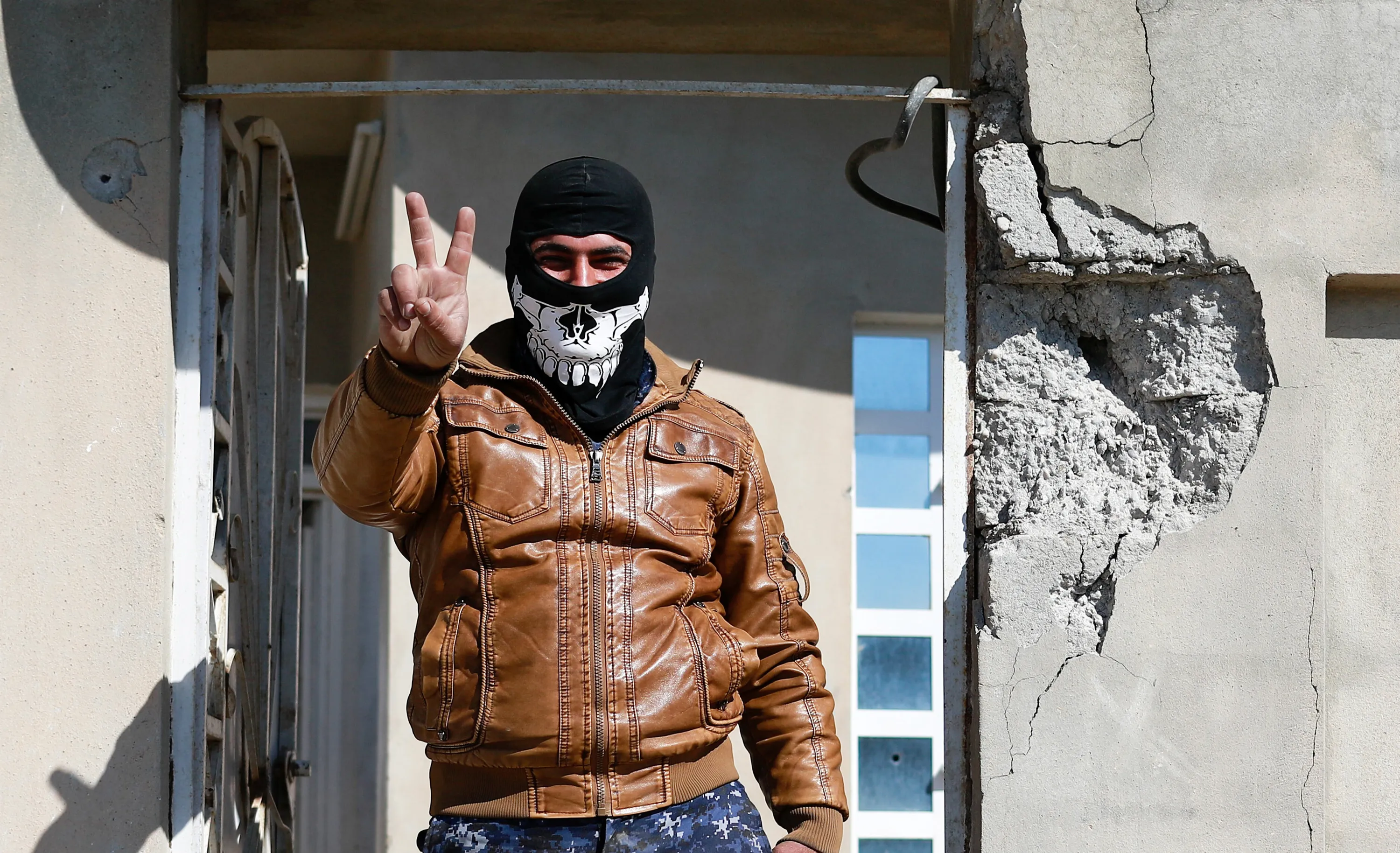 A Federal police member flashes victory sign in the liberated part of Albu Saif village south of Mosul, Iraq February 21, 2017. (Photo by Zohra Bensemra/Reuters)