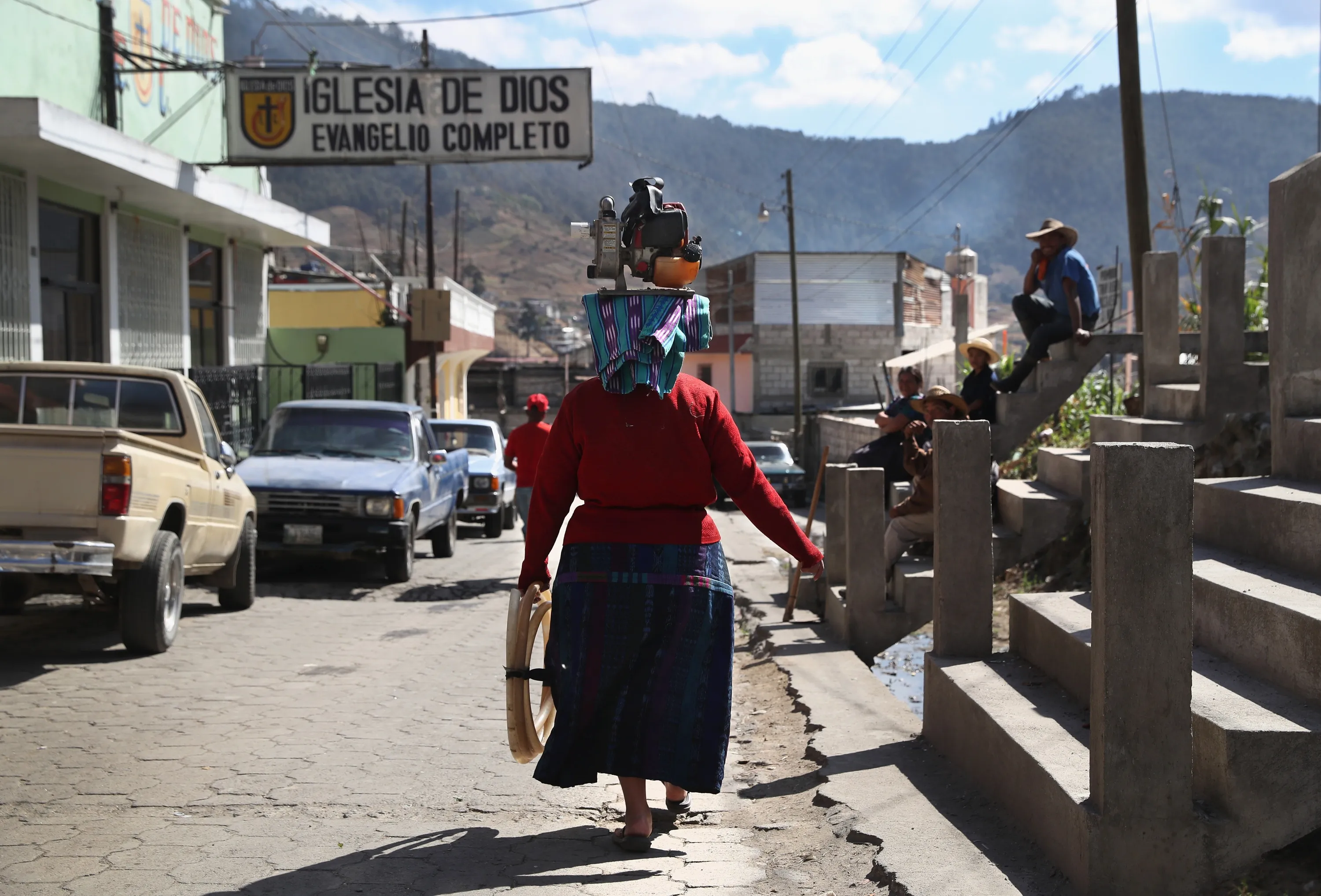 A woman carries a water pump to work on February 11, 2017 in Almolonga, Guatemala. (Photo by John Moore/Getty Images)