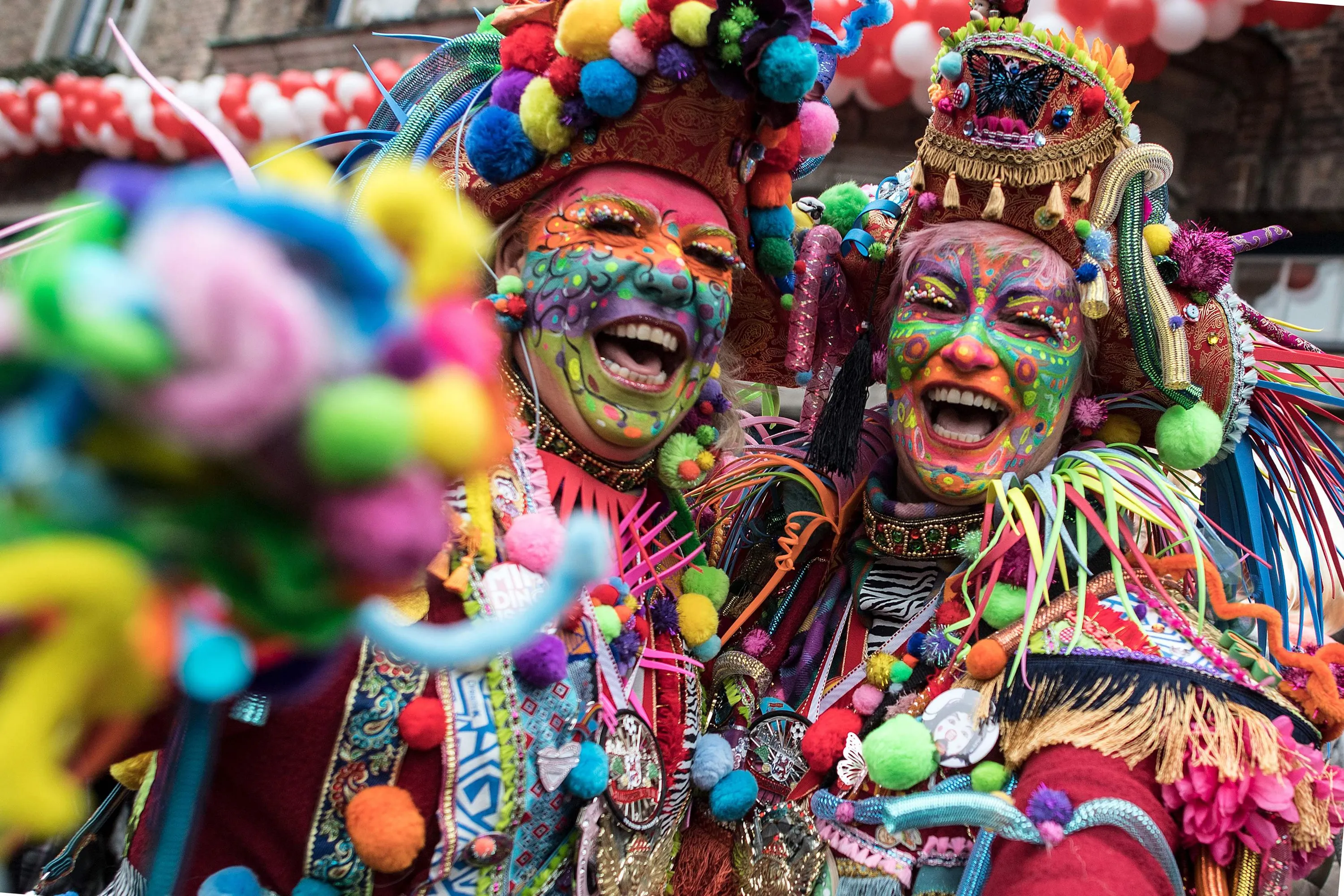 Costumed carnival revelers celebrate Carnival in Duesseldorf, Germany, 23 February 2017. The street carnival begins on “Fat Thursday” in the Rhineland and elsewhere. (Photo by Federico Gambarini/AFP Photo/DPA)