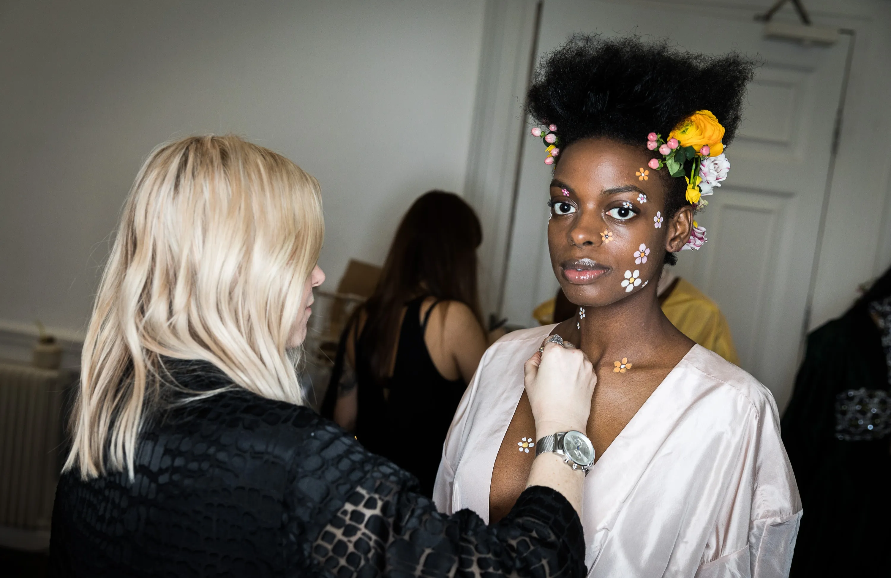 A model backstage ahead of the Tata Naka show during the London Fashion Week February 2017 collections at the ICA on February 21, 2017 in London, England. (Photo by Tim P. Whitby/Getty Images)