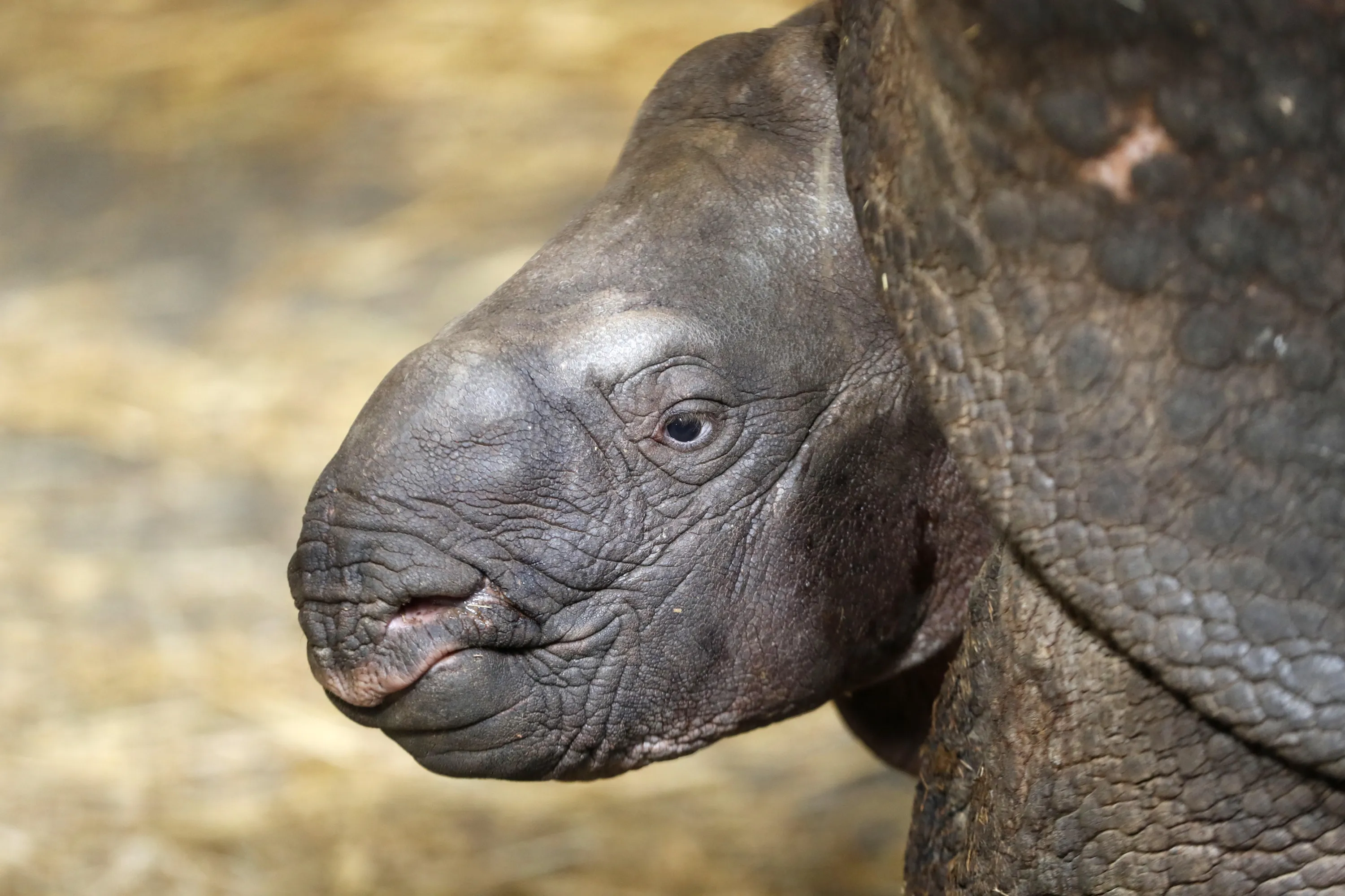 A newly born baby Indian rhino stands by its mother Manjula in their enclosure at the zoo in Plzen, Czech Republic, Friday, February 24, 2017. (Photo by Petr David Josek/AP Photo)