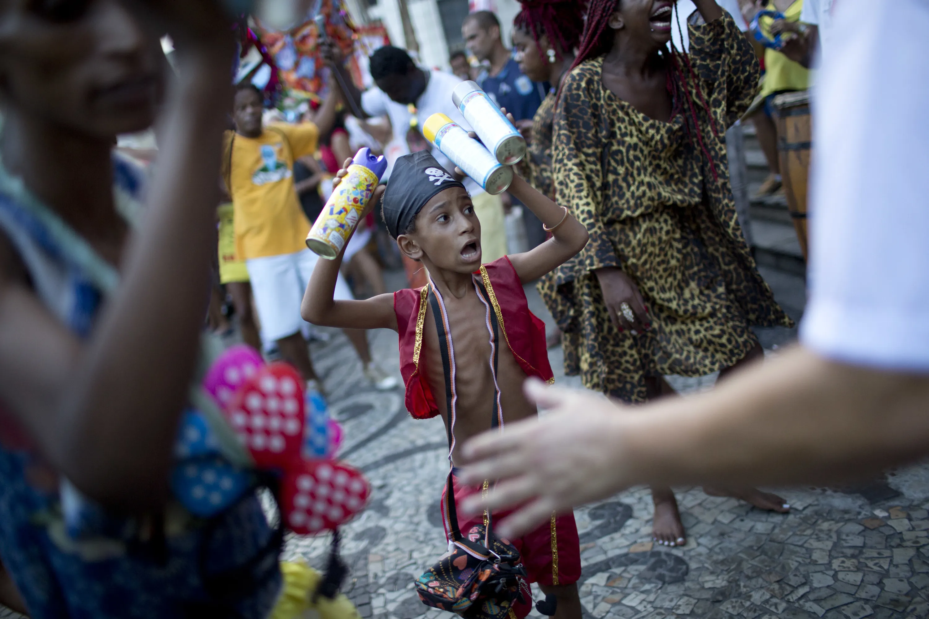 A youth sells foam cans to revelers during the “Get out Temer” carnival street party in Rio de Janeiro, Brazil, Friday, February 24, 2017. (Photo by Silvia Izquierdo/AP Photo)