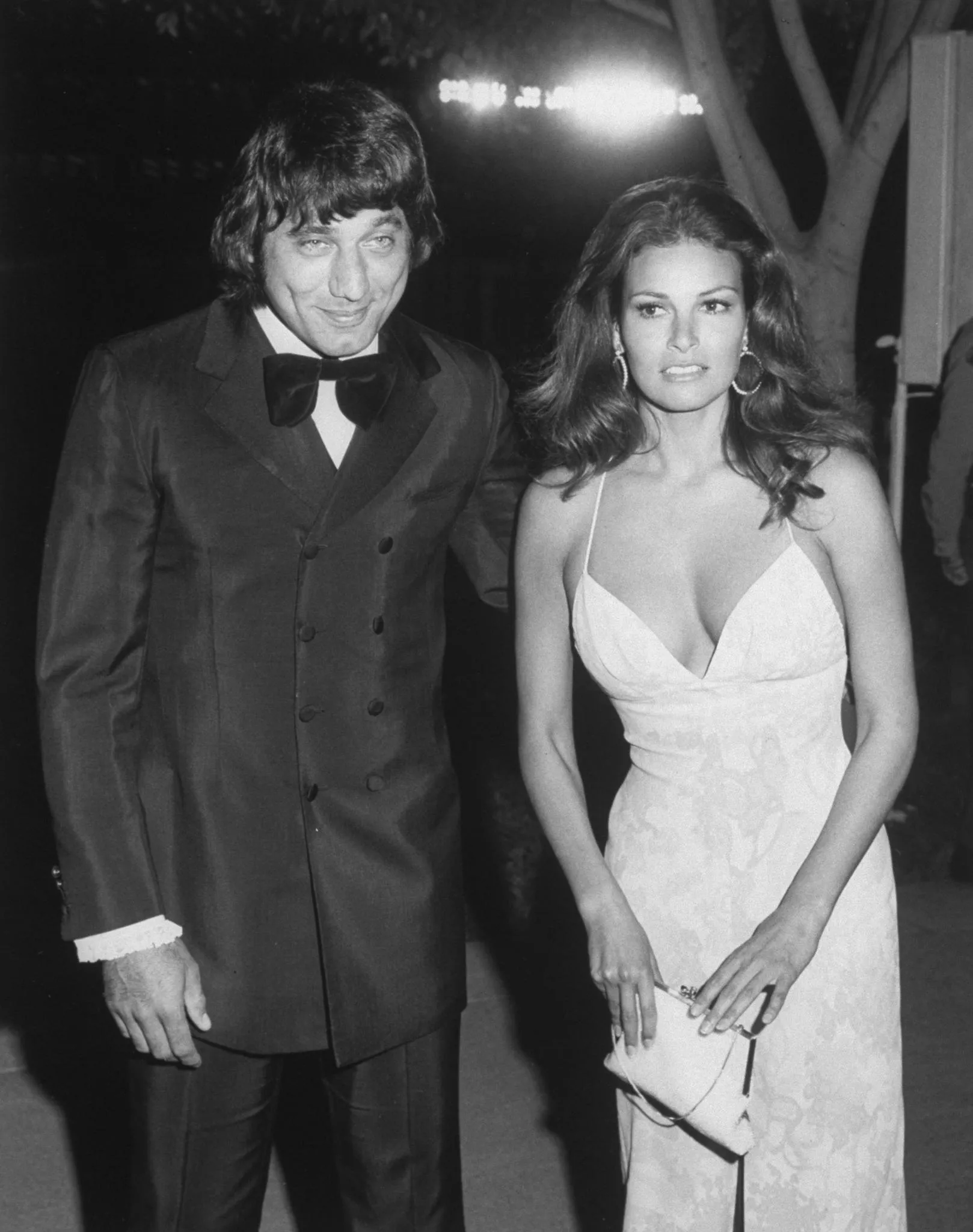 American actress Raquel Welch (R) and American football player Joe Namath (L) stand together at the Academy Awards, April 15, 1971. (Photo by Time Life Pictures/Long Photography, Inc./The LIFE Images Collection/Getty Images)