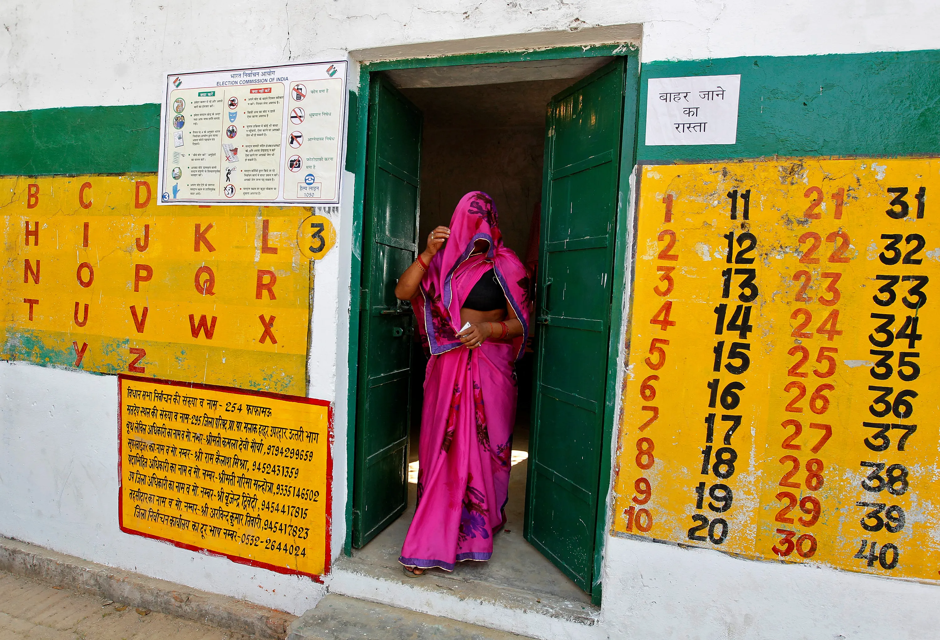 A woman leaves after casting her vote at a polling station during the fourth phase of the state assembly election in Allahabad, India, February 23, 2017. (Photo by Jitendra Prakash/Reuters)