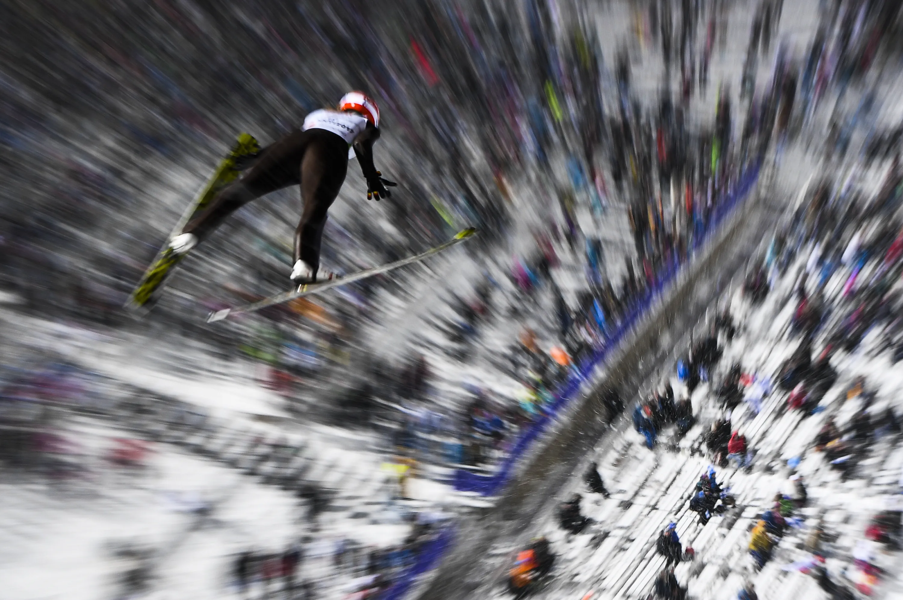 Svenja Wuerth of Germany soars during the mixed normal hill team event of the 2017 FIS Nordic World Ski Championships in Lahti, Finland, on February 26, 2017. Germany won, Austria placed second and Japan placed third. (Photo by Jonathan Nackstrand/AFP Photo)