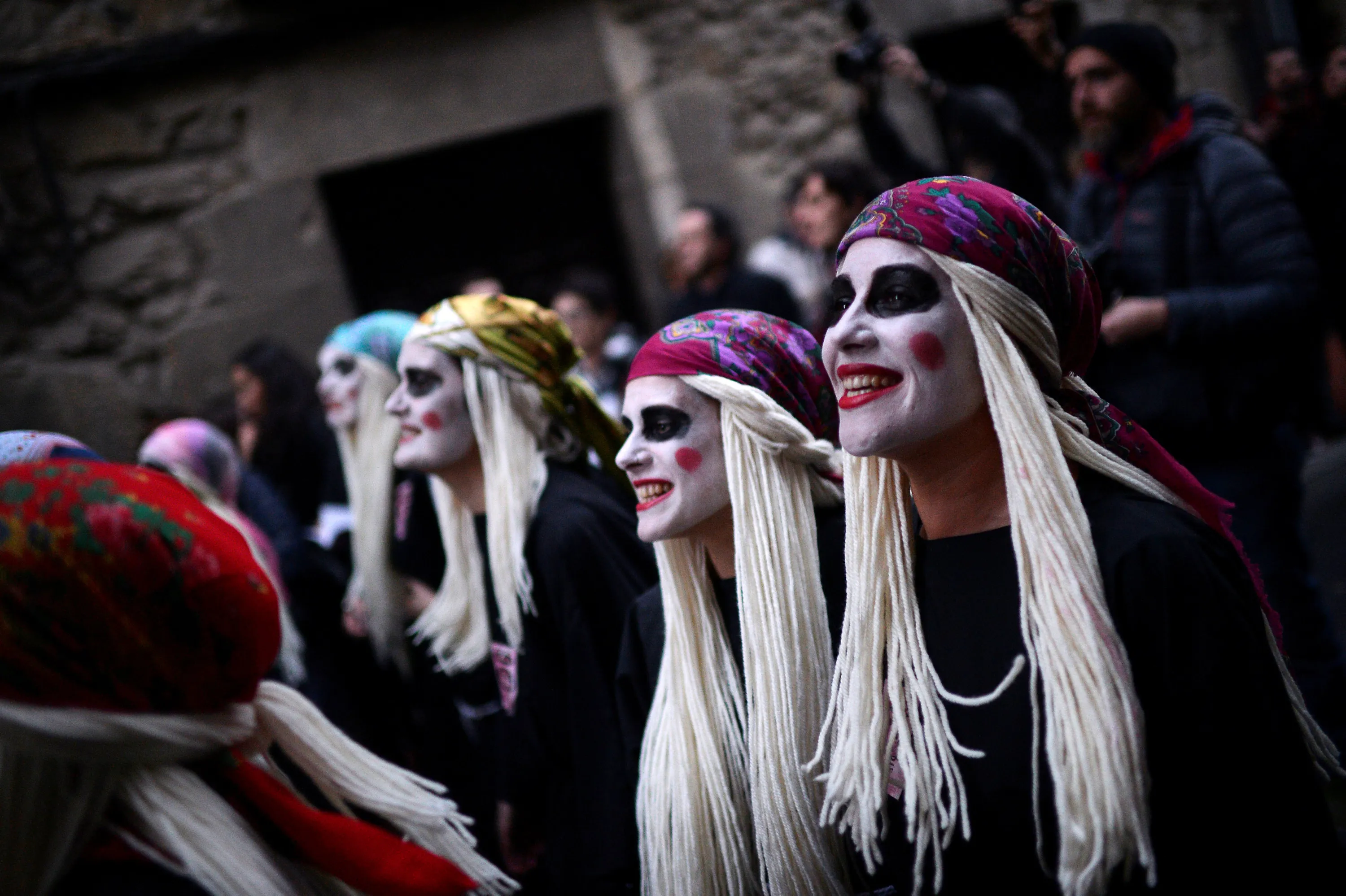 Townswomen dressed as Lamia, Basque mythological creatures, sing and dance in the Basque coastal town of Mundaka, northern Spain, on Carnival Sunday, February 26, 2017. (Photo by Vincent West/Reuters)
