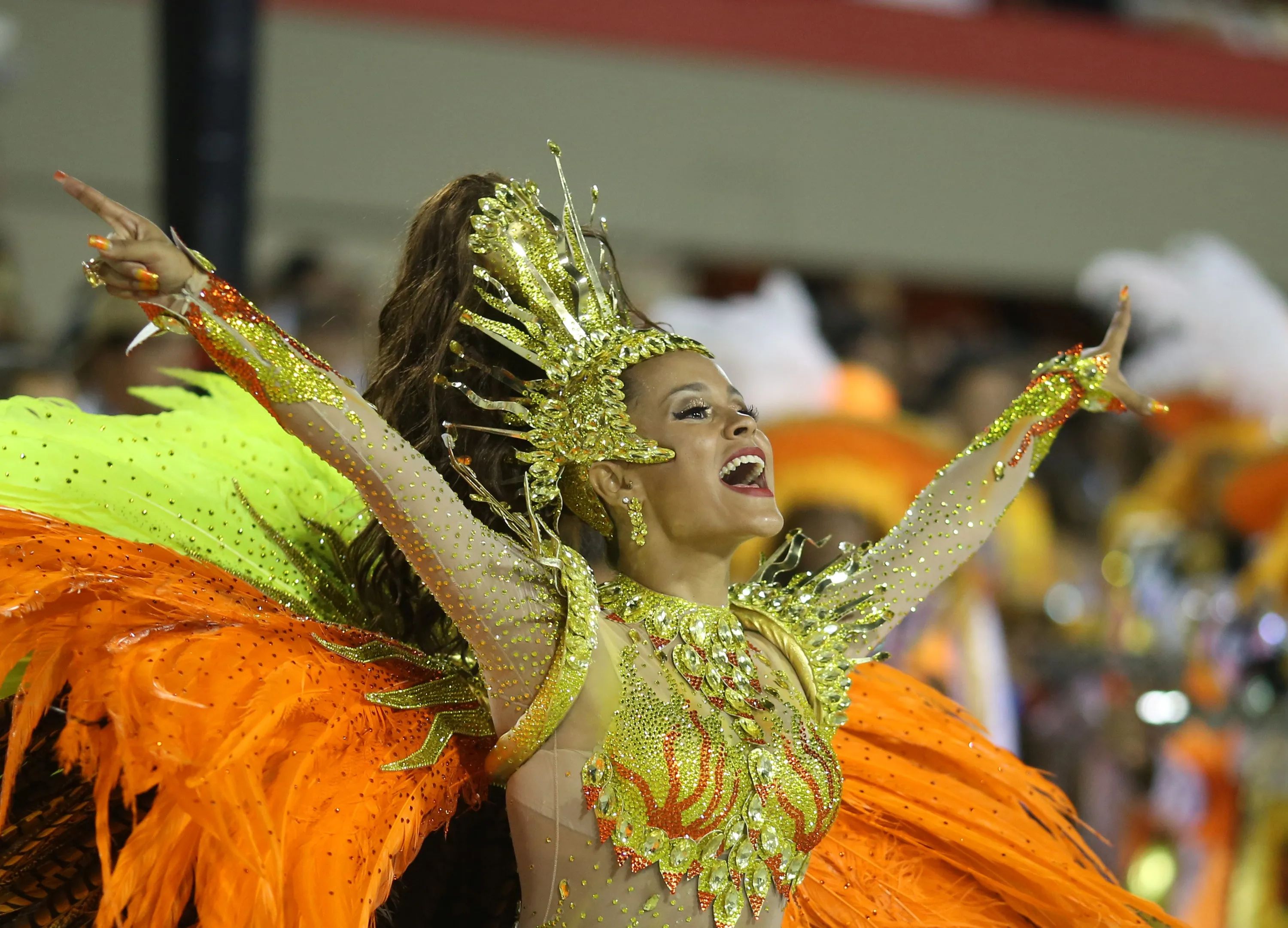 Drum queen Raphaela Gomes from Sao Clemente samba school performs during the second night of the carnival parade at the Sambadrome in Rio de Janeiro, Brazil February 27, 2017. (Photo by Pilar Olivares/Reuters)