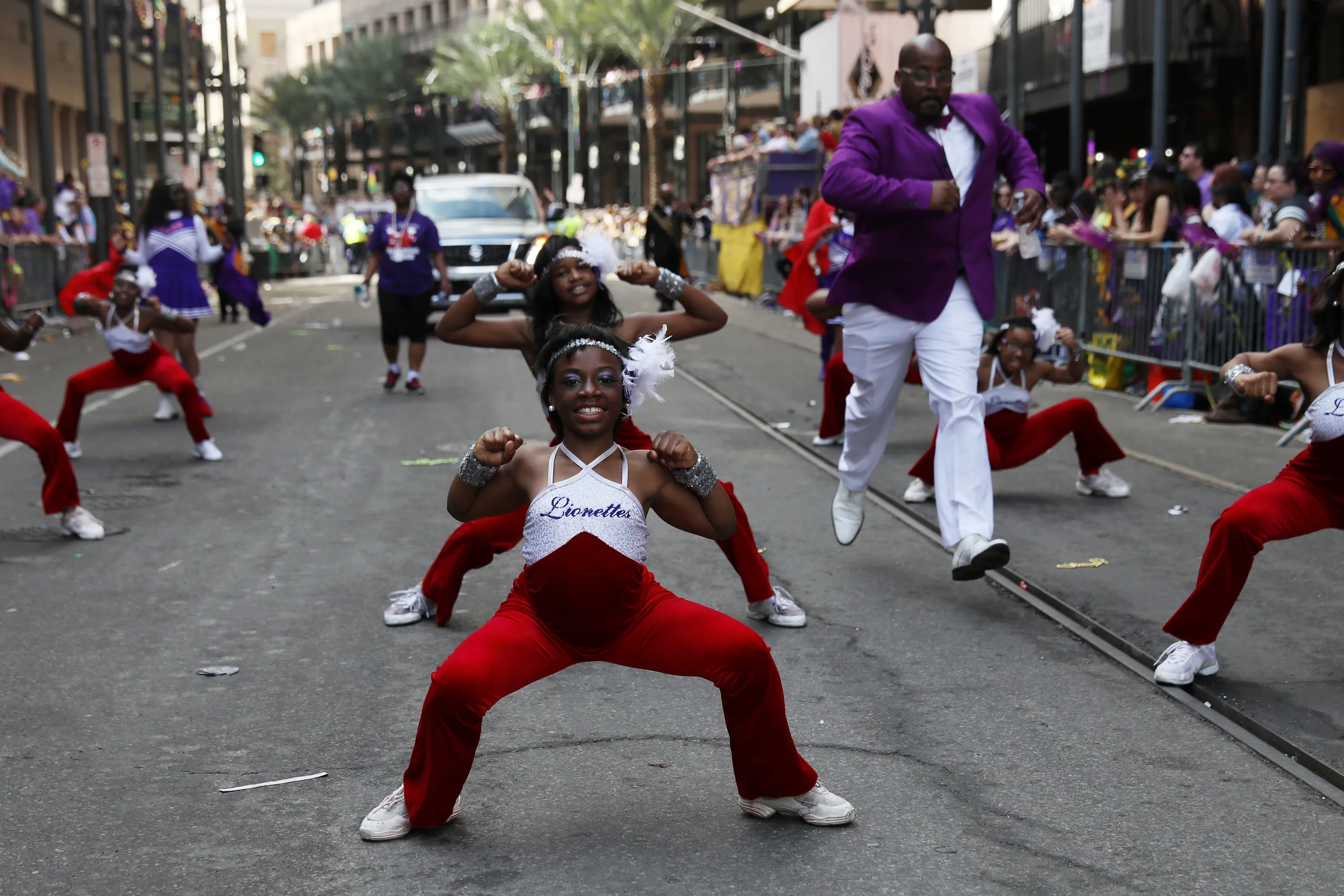 Members of a school dance group perform during the Krewe of Zulu parade during Mardi Gras in New Orleans, Louisiana U.S., February 28, 2017. (Photo by Shannon Stapleton/Reuters)