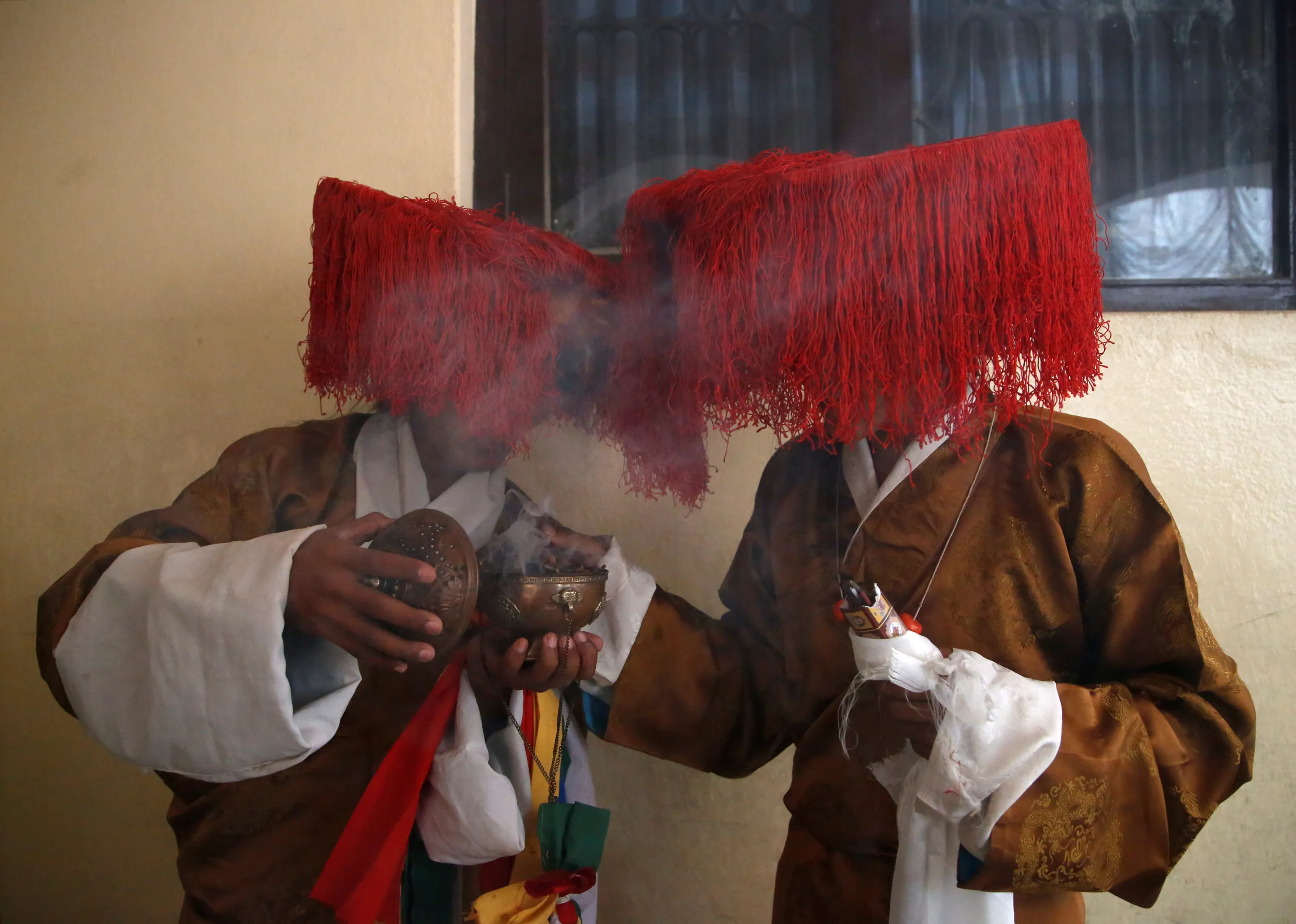 Tibetan men in traditional attire burn incense during a function organised to mark “Losar”, or the Tibetan New Year, in Kathmandu, Nepal March 1, 2017. (Photo by Navesh Chitrakar/Reuters)