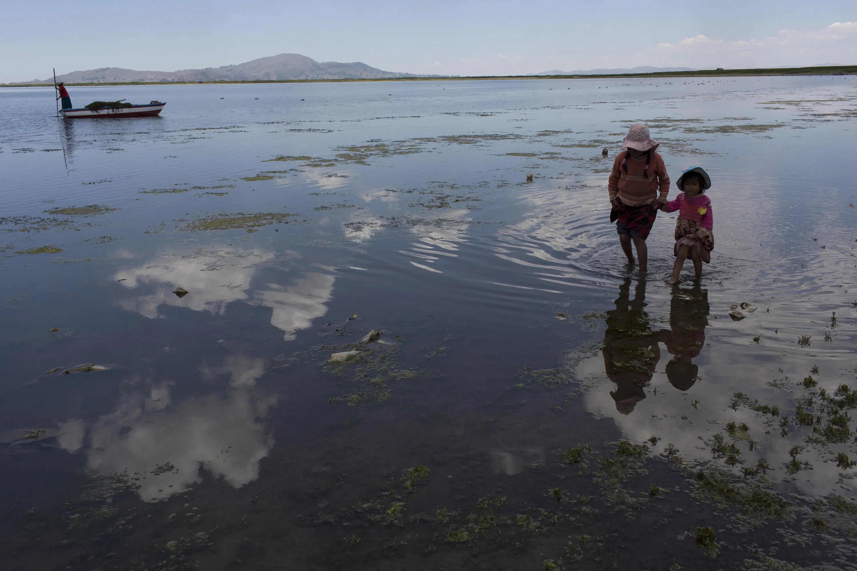 In this February 2, 2017 photo, cousins from the Avila family search for discarded toys on the shores of Lake Titicaca, in Coata in the Puno region of Peru. The shores of South America's largest lake are littered with dead frogs, discarded paint buckets and bags of soggy trash. Less visible threats lurk in the water itself: highly toxic levels of lead and mercury. (Photo by Rodrigo Abd/AP Photo)