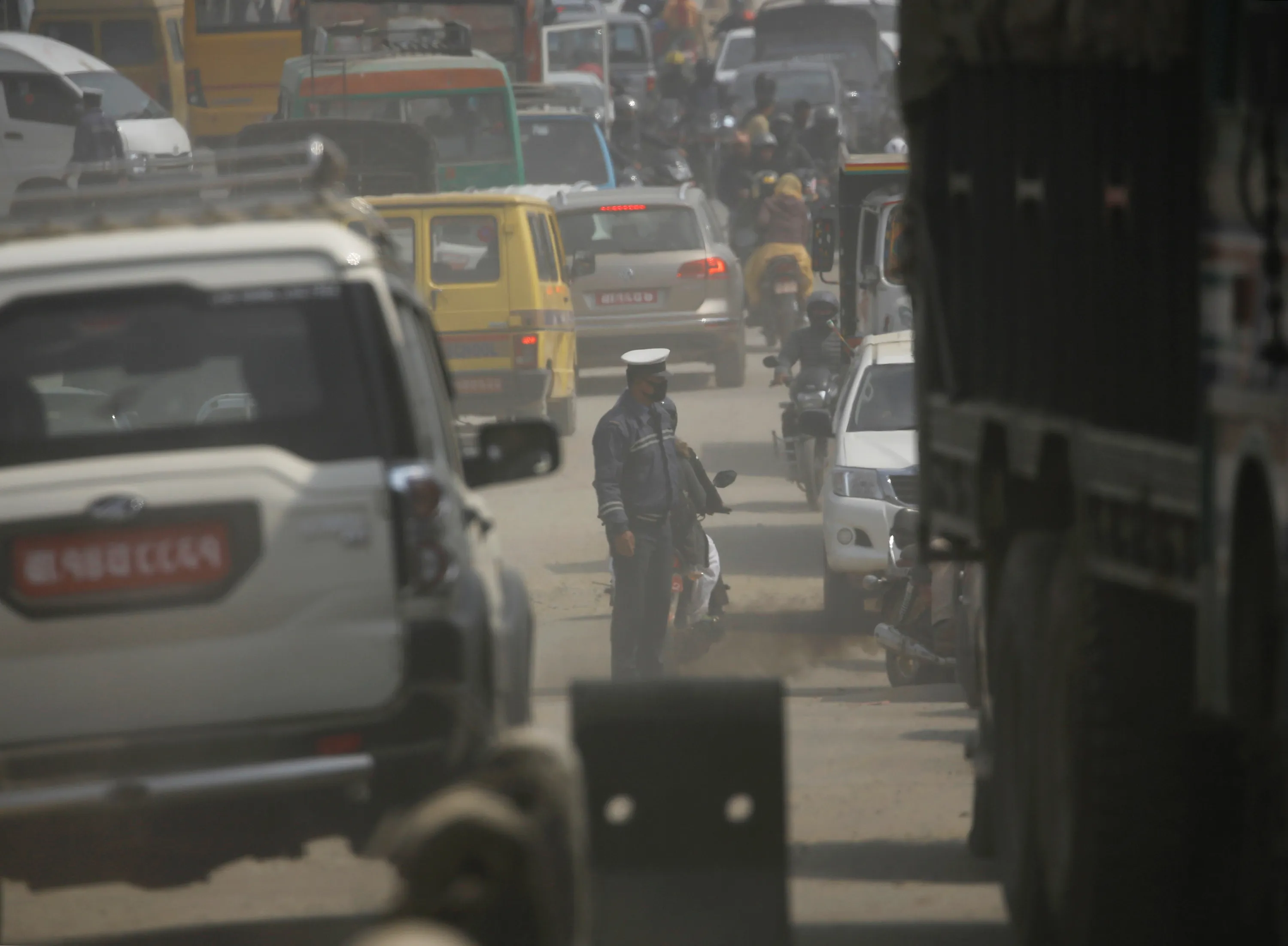 A traffic police wearing a mask stands in between vehicles on a dusty road in Kathmandu, Nepal February 27, 2017. (Photo by Navesh Chitrakar/Reuters)