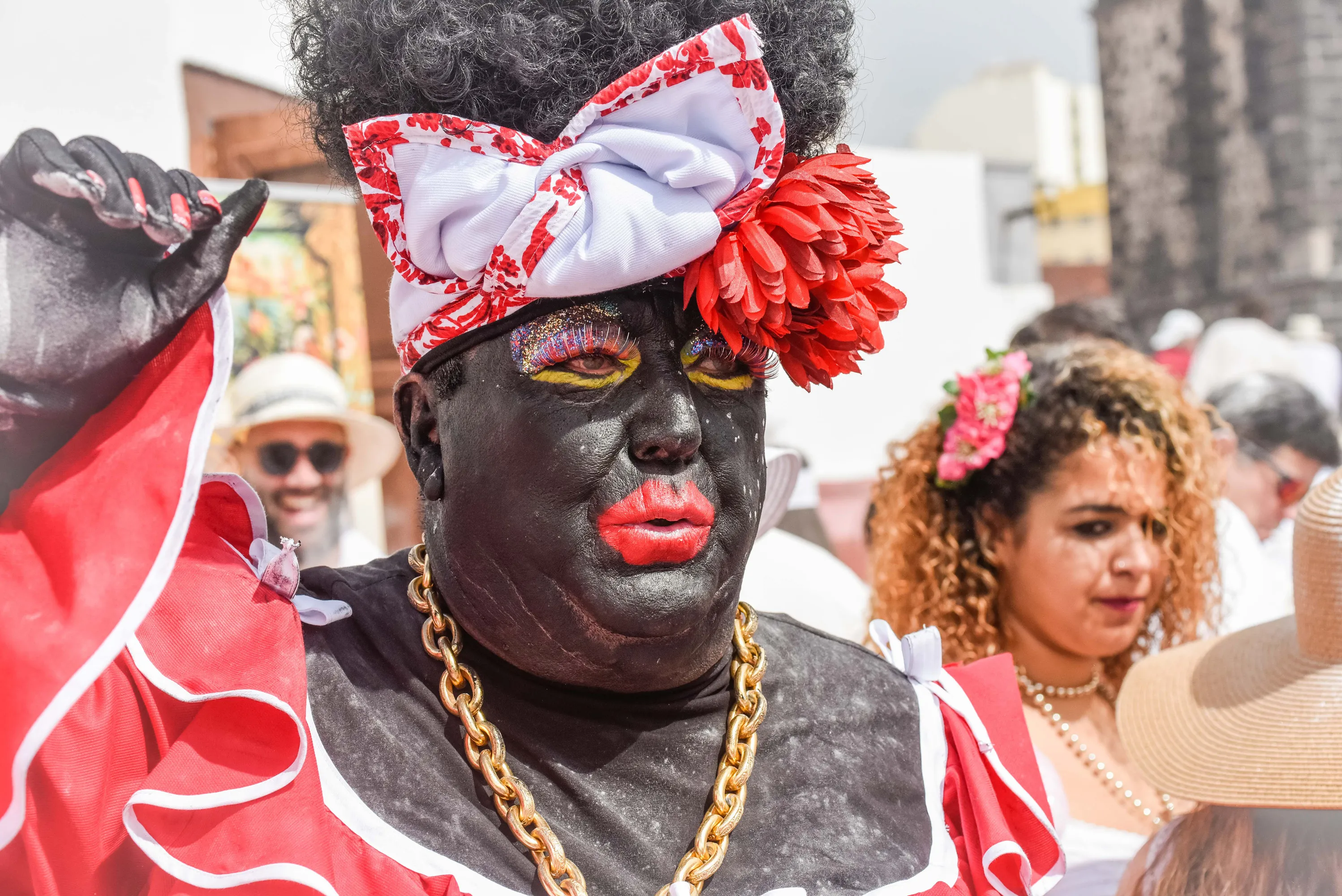 Revellers covered with talcum powder wait for promotional goodies during the street carnival “Los Indianos” in Santa Cruz de la Palma, on the Spanish Canary island of La Palma, on February 27, 2017. The event began on February 1 and finishes on March 5 with orchestras playing Caribbean and Brazilian rhythms throughout the festivities that range from elections for the Carnival Queen, the Junior Queen and the Senior Queen, to children and adult murgas (satirical street bands), comparsas (dance groups) and street performances. (Photo by Desiree Martin/AFP Photo)