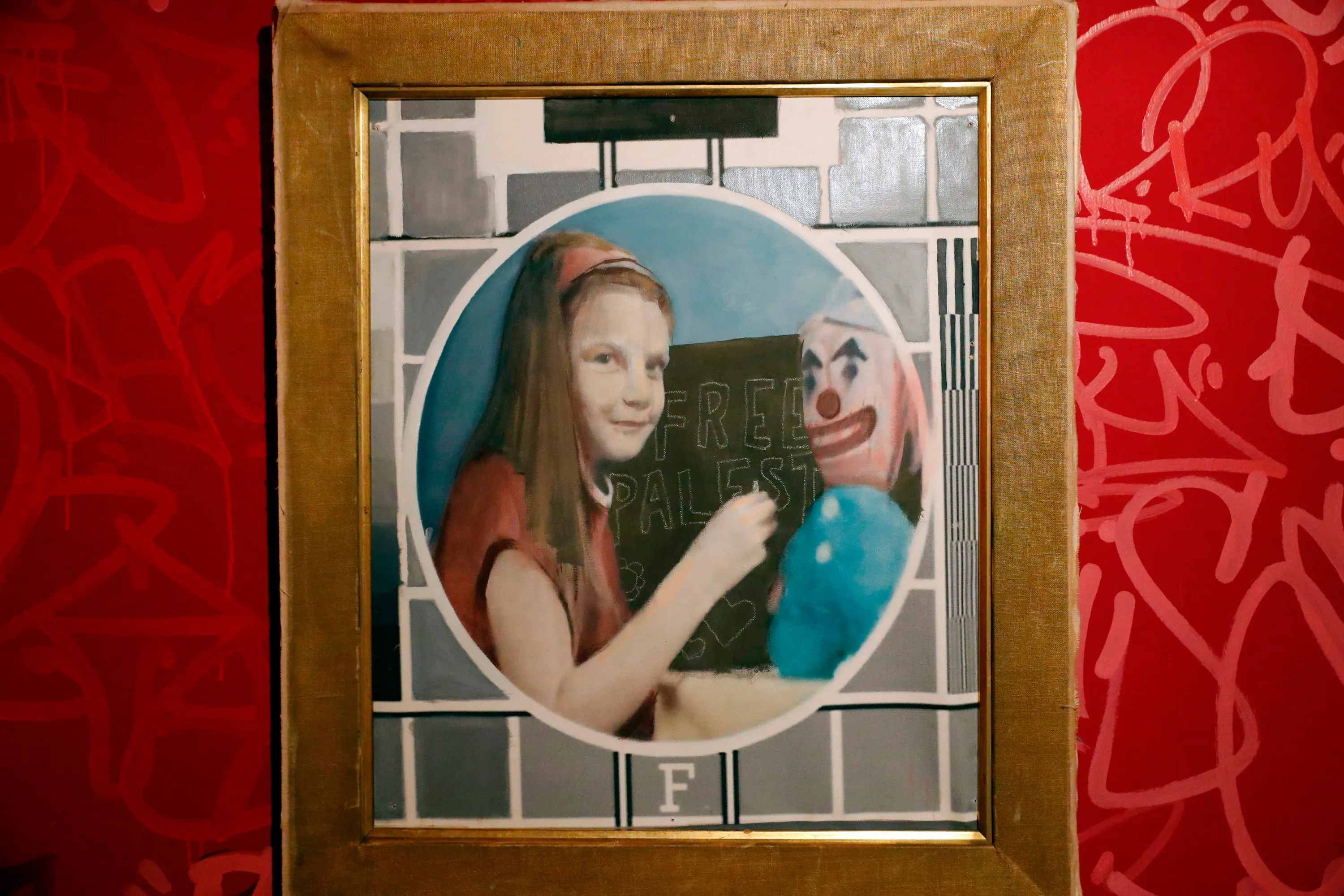 An installation by Banksy is seen hanging inside one of the rooms at the street artist' s newly opened Walled Off hotel in the Israeli occupied West Bank town of Bethlehem, on March 3, 2017. (Photo by Thomas Coex/AFP Photo)
