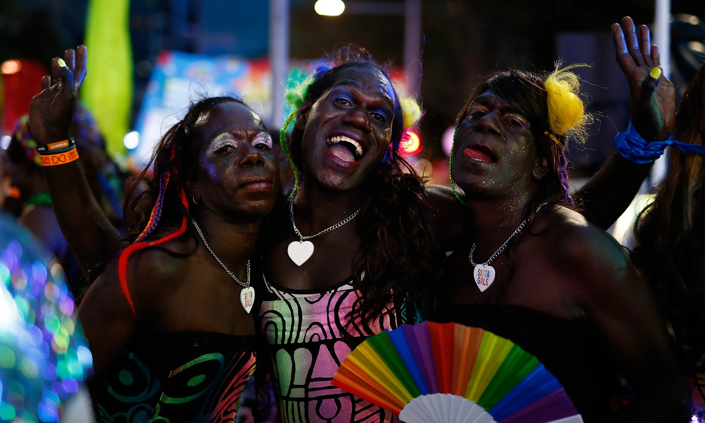 Members of the Tiwi Islands transgender community attend the Sydney Gay and Lesbian Mardi Gras parade on March 4, 2017 in Sydney, Australia. After a successful crowd funding campaign, a group of 30 transgender women from the remote Northern Territory Tiwi Islands travelled over 4,000 kilometres to Sydney to represent their community for the first time at the Sydney Gay and Lesbian Mardis Gras. (Photo by Zak Kaczmarek/Getty Images)