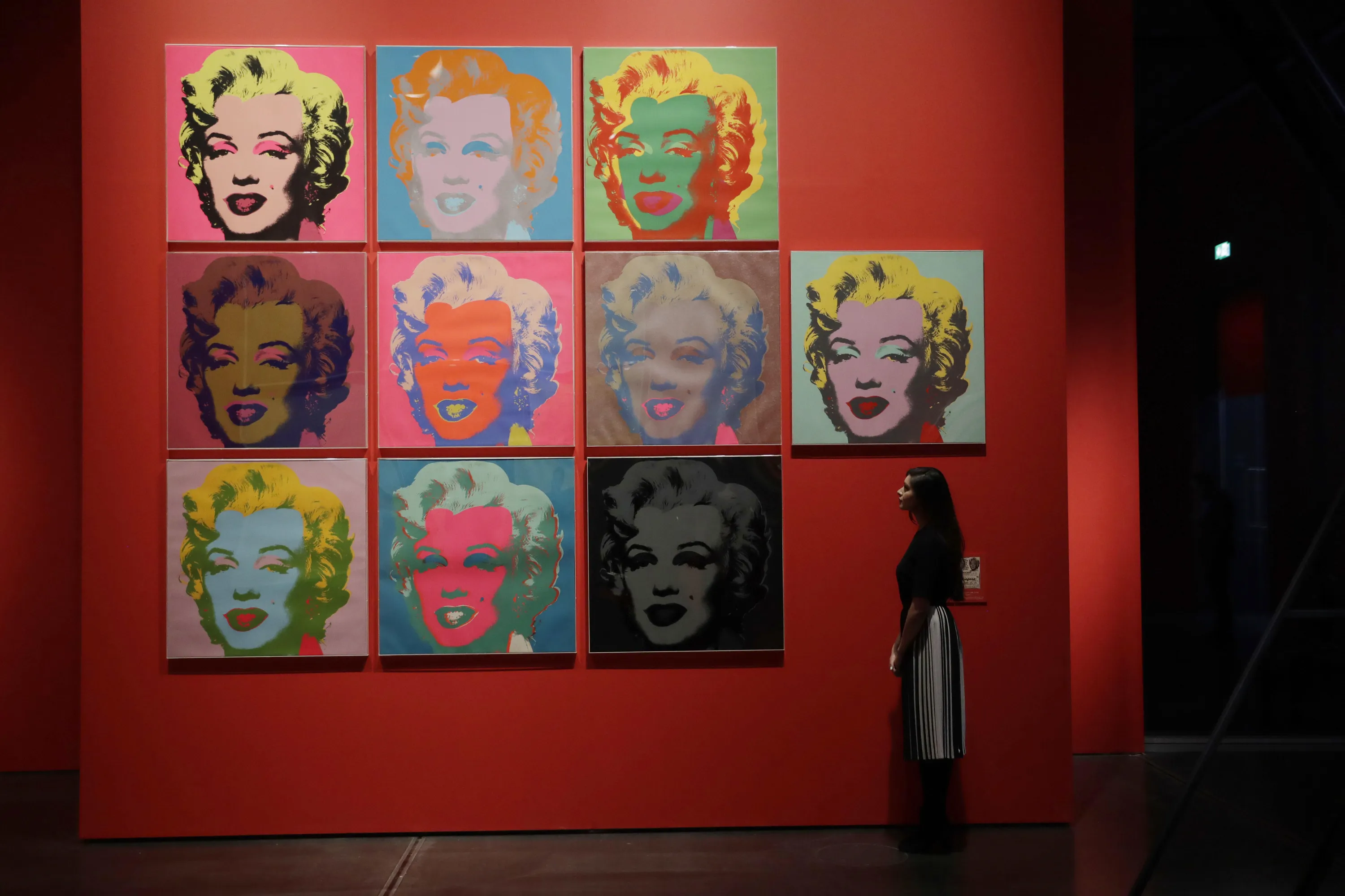 A British Museum representative poses for photographs next to Andy Warhol's “Marilyn 1967, 10 Color Screenprints” which feature in “The American Dream: pop to the present” exhibition during a media photocall at the British Museum in London, Monday, March 6, 2017. (Photo by Matt Dunham/AP Photo)