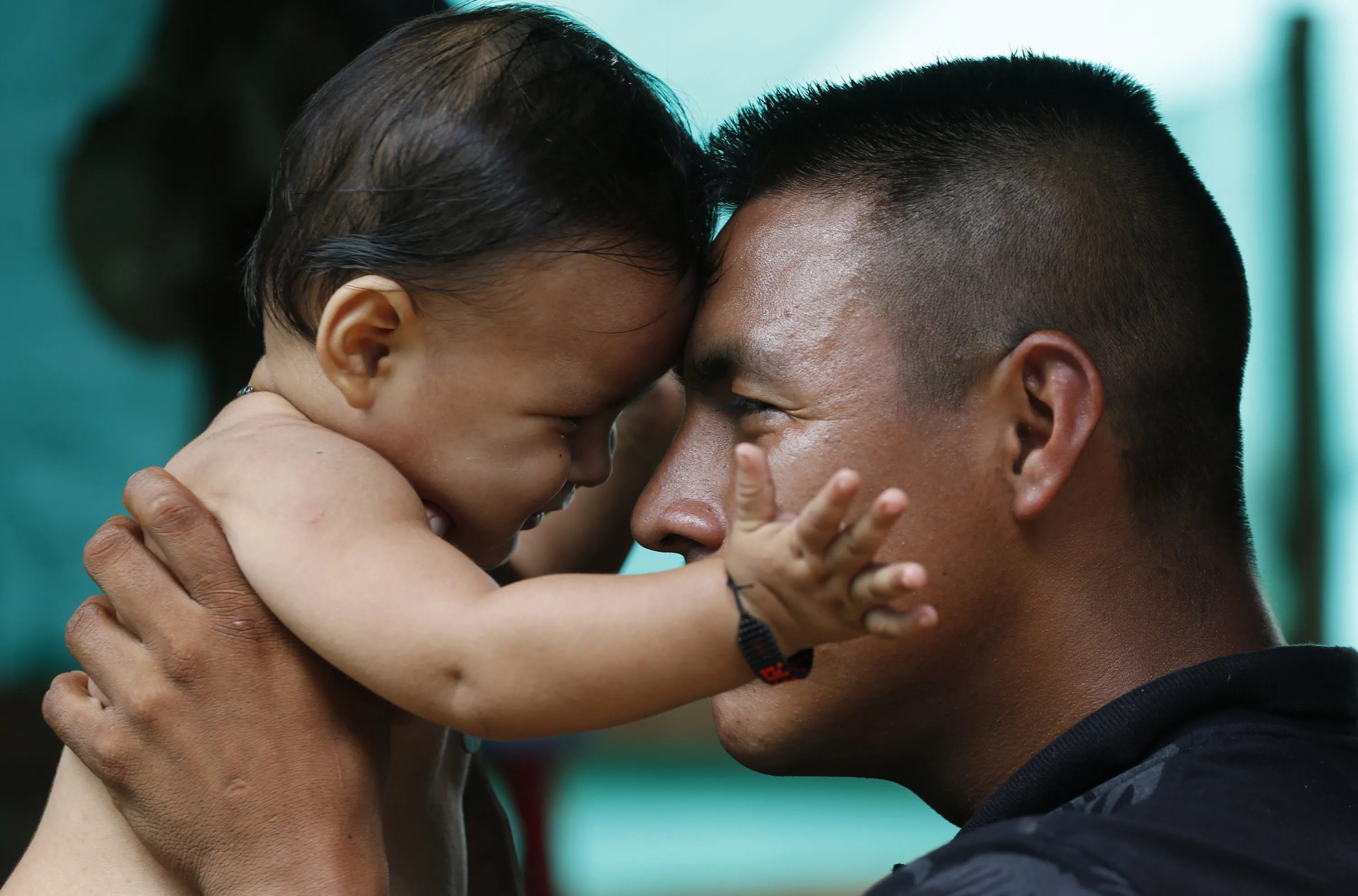 In this Tuesday, February 28, 2017 photo, FARC rebel Vicente Pulecio plays with his 9-month-old son Dainer inside their tent at a rebel camp in a demobilization zone in La Carmelita, in Colombia's southwestern Putumayo state. Pulecio's wife Jerly Suarez gave birth to their son shortly before the FARC began its march to one of the 26 demobilization zones. (Photo by Fernando Vergara/AP Photo)