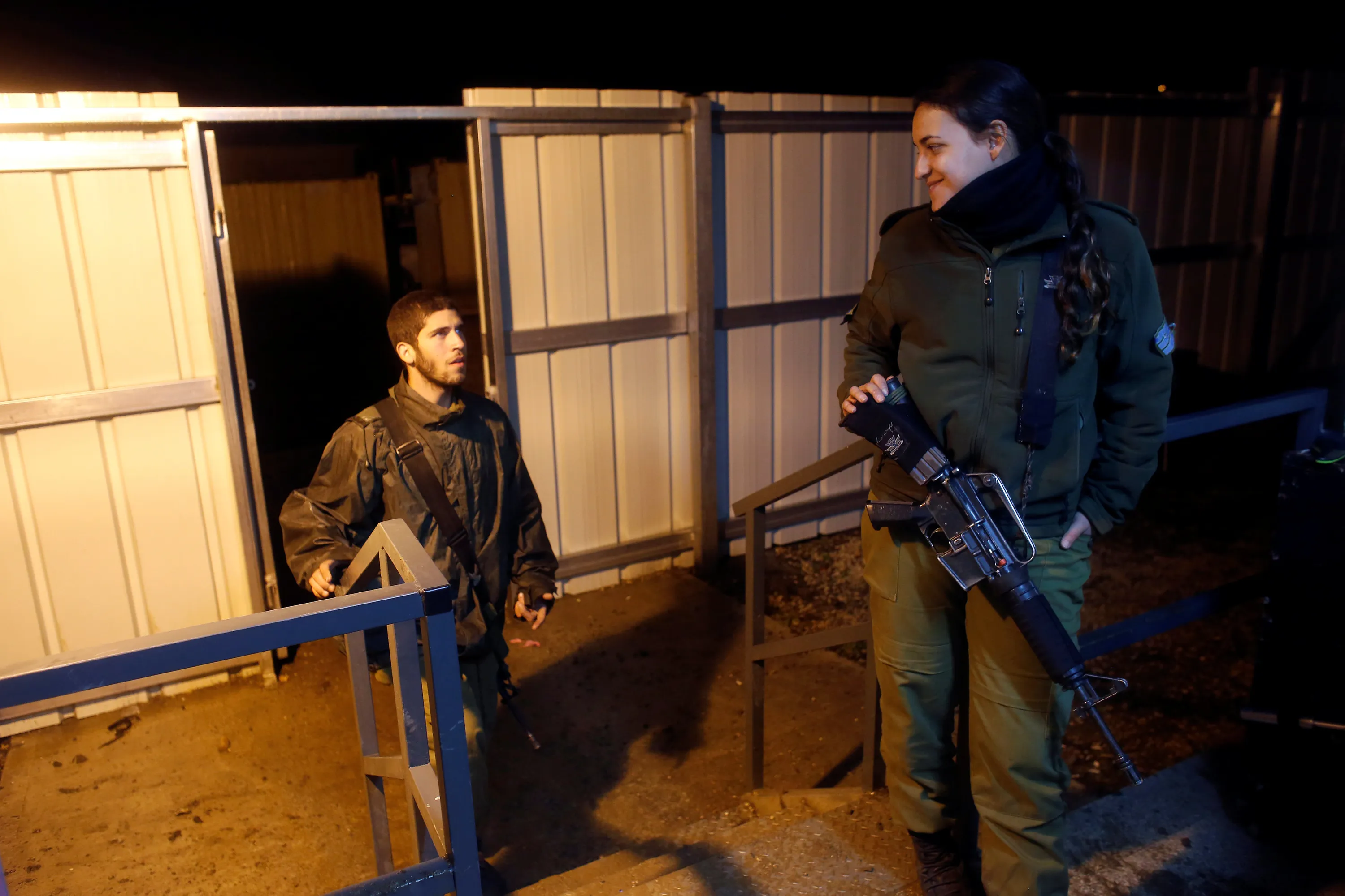 Israeli soldiers from the Haraam artillery battalion enter the women's living quarters at a military base in the Israeli-occupied Golan Heights March 1, 2017. (Photo by Nir Elias/Reuters)