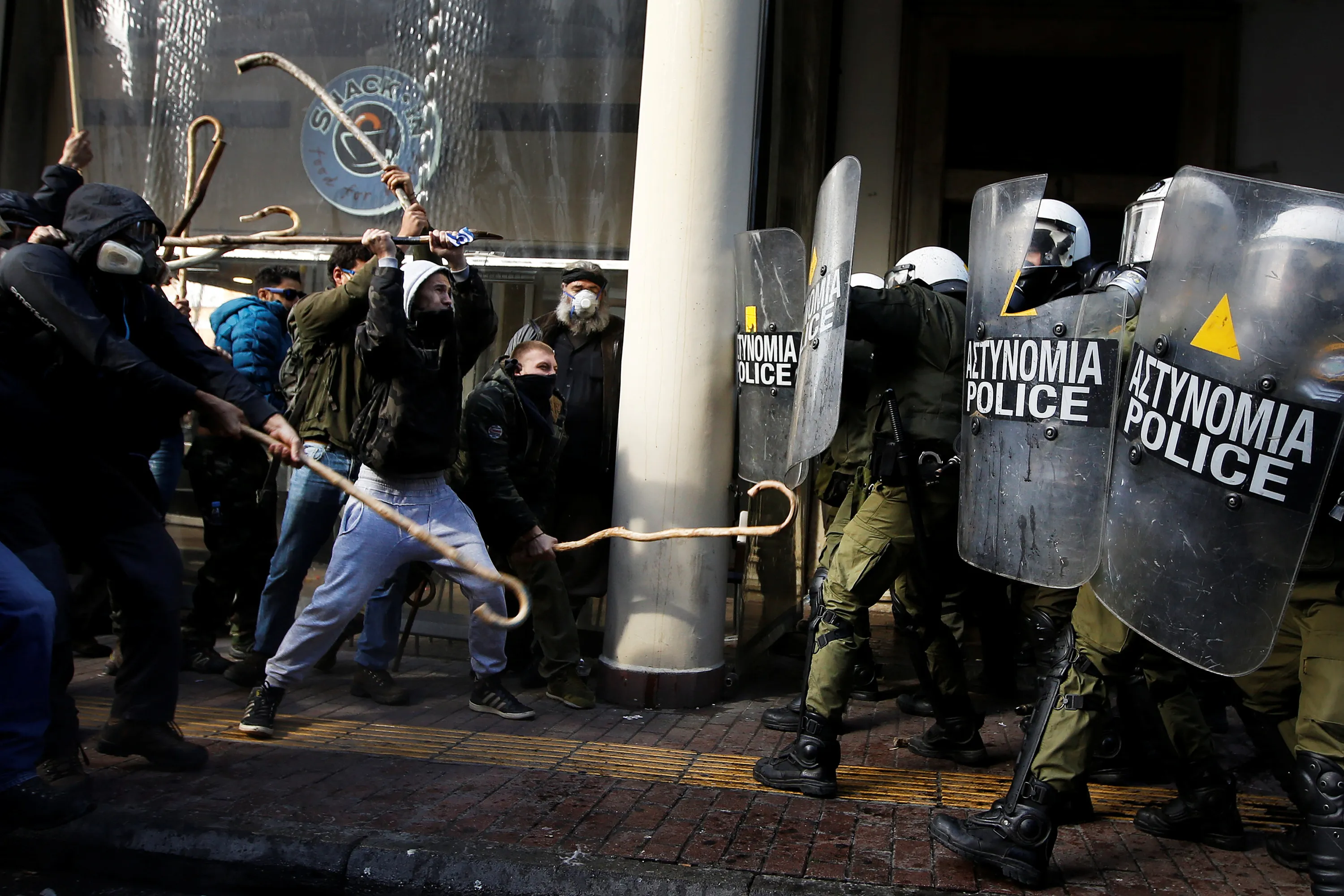 Greek Farmers Clash with Riot Police