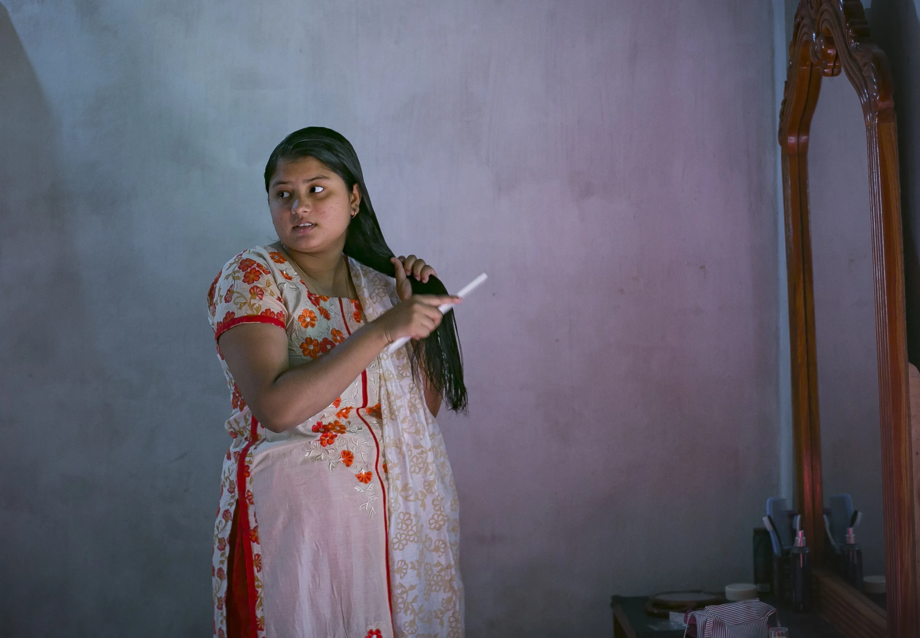 Meghla does her hair on March 7, 2017 in Khulna division, Bangladesh. (Photo by Allison Joyce/Getty Images)