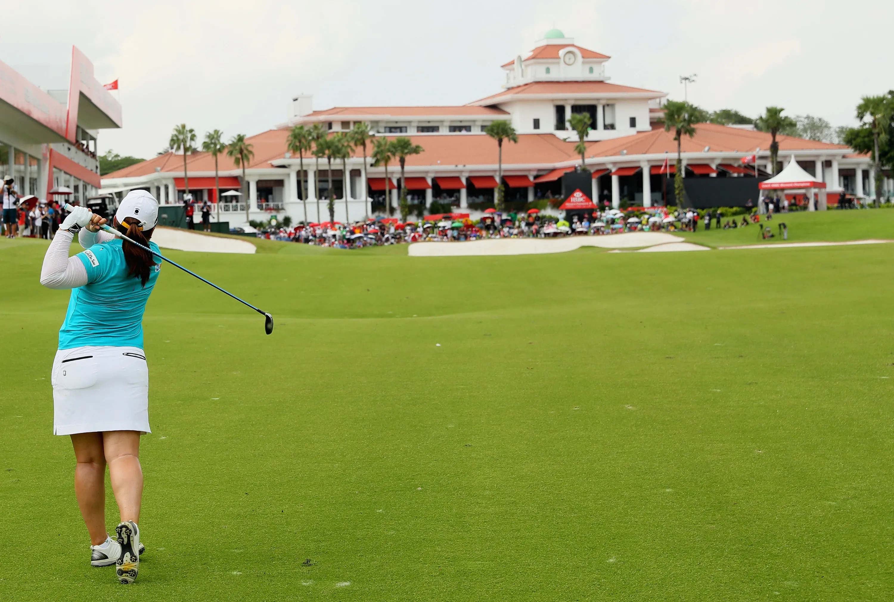 Inbee Park of Korea plays her second shot on the 18th hole during the final round of the HSBC Women's Champions on the Tanjong Course at Sentosa Golf Club on March 5, 2017 in Singapore. (Photo by Andrew Redington/Getty Images,)