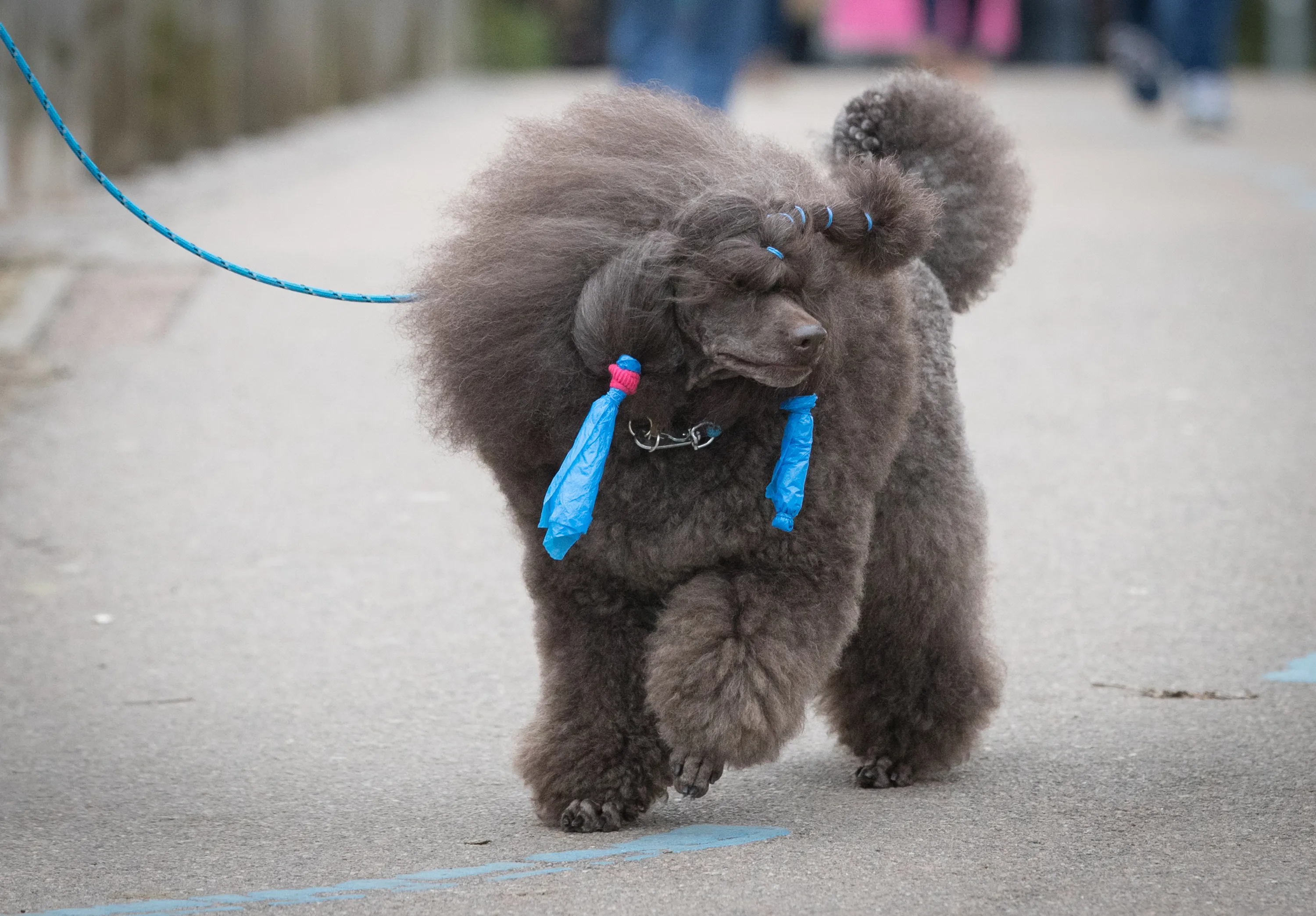 A poodle arrives on the second day of Crufts Dog Show at the NEC Arena on March 10, 2017 in Birmingham, England. (Photo by Matt Cardy/Getty Images)