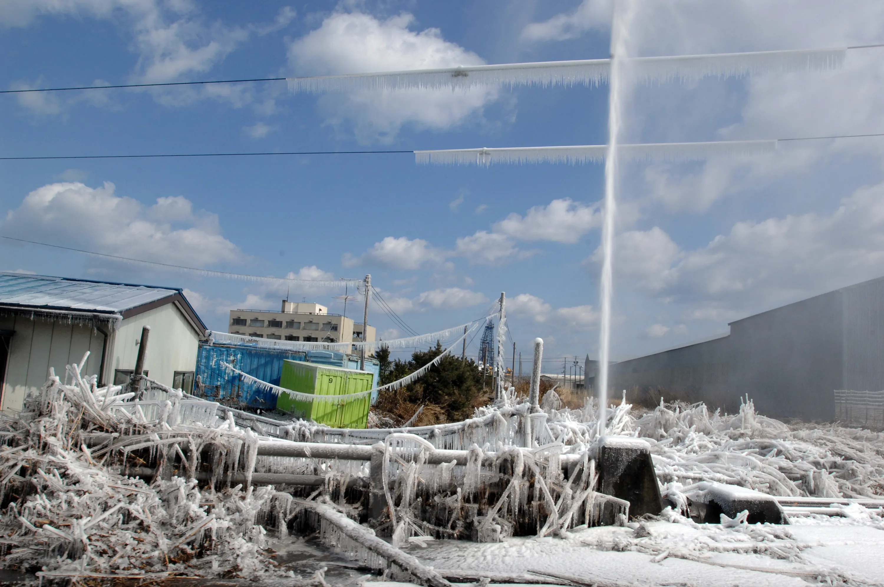 In this handout image provided by U.S. Navy, A water pipe spews water after being damaged by a tsunami, which was triggered by a massive earthquake off the Northeastern coast March 12, 2011 in Hachinohe, Japan. An earthquake measuring 8.9 on the Richter scale has hit the northeast coast of Japan causing tsunami alerts throughout countries bordering the Pacific Ocean. (Photo by Daniel Sanford/ U.S. Navy via Getty Images)