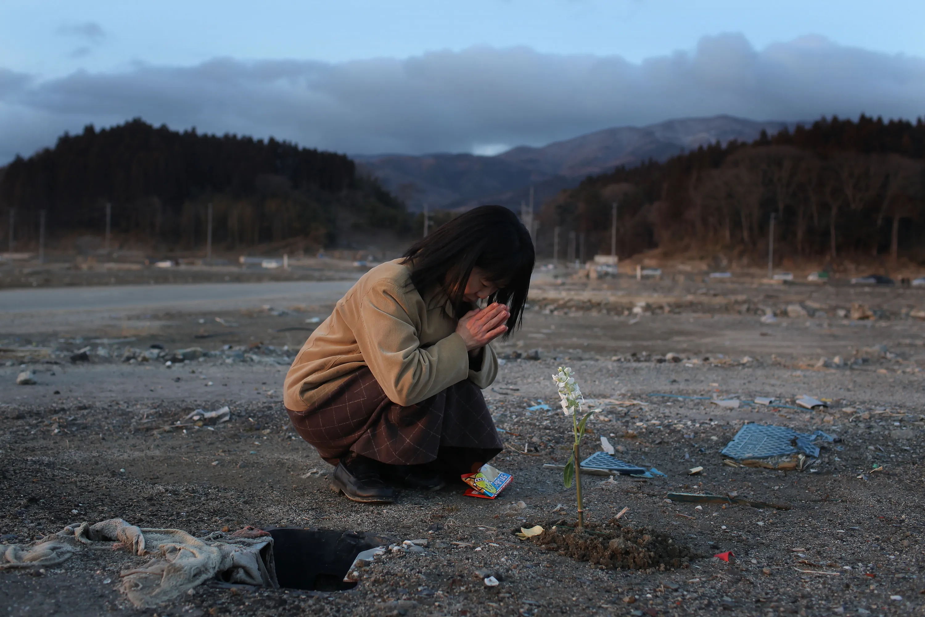 Keiko Suzuki, 40 prays at the site of her uncle's home on March 11, 2012 in Rikuzentakata, Japan. Her uncle Kazuyoshi Sugawara was killed when his home was swept away by the tsunami last year. On the one year anniversary, the areas most affected by last year's March 11, 2011 earthquake and subsequent tsunami that left 15,848 dead and 3,305 missing according to Japan's National Police Agency, continue to struggle. Thousands of people still remain without homes living in temporary dwellings. The Japanese government faces an uphill battle with the need to dispose of rubble as it works to rebuild economies and livelihoods. Across the country people are taking part in ceremonies to pay respects to the people who lost their lives. (Photo by Chris McGrath/Getty Images)