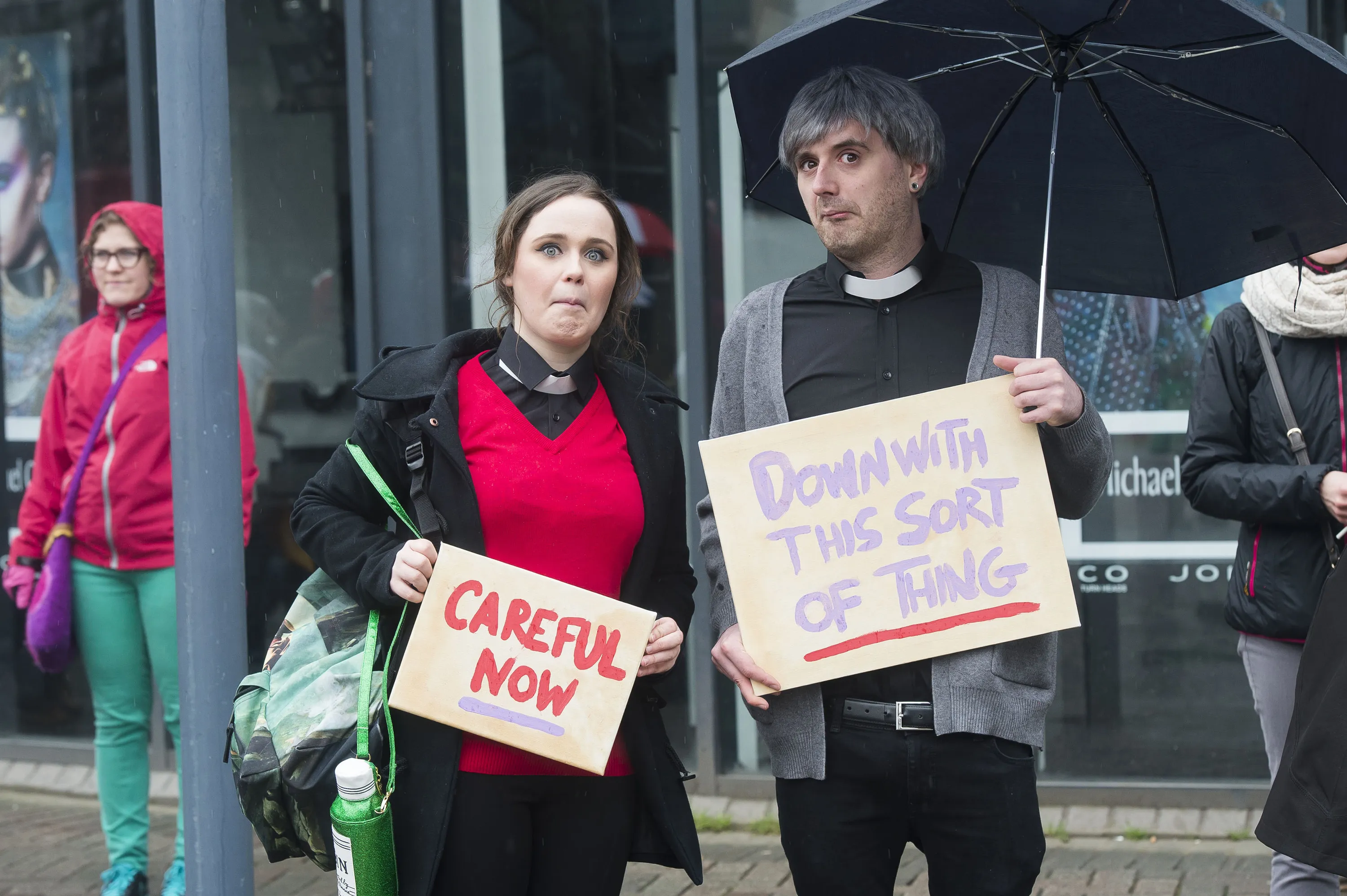 Audience members in fancy dress watch the parade during the annual St Patrick's Day Parade on March 17, 2017 in Belfast, Northern Ireland. (Photo by Carrie Davenport/Getty Images)
