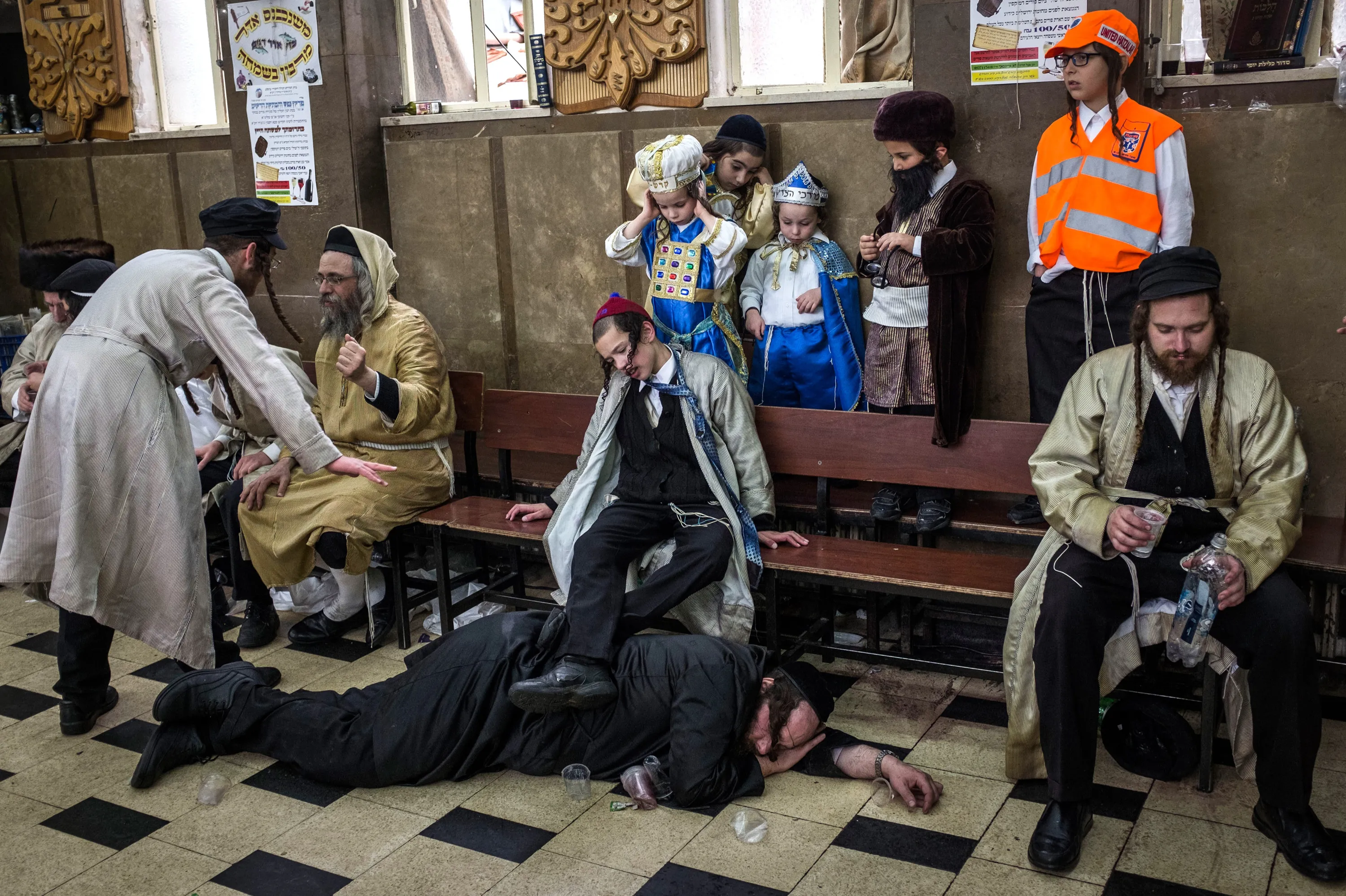 Ultra Orthodox Jews celebrating holiday of Purim on March 13, 2017 in Jerusalem, Israel. The carnival-like Purim holiday is celebrated with parades and costume parties to commemorate the deliverance of the Jewish people from a plot to exterminate them in the ancient Persian empire 2,500 years ago, as described in the Book of Esther. (Photo by Ilia Yefimovich/Getty Images)