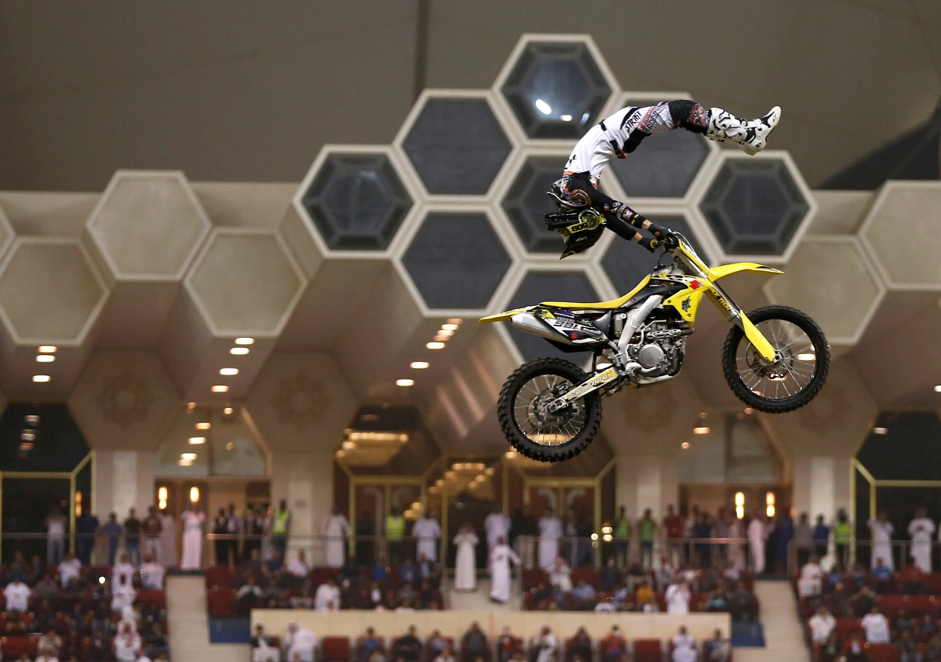 A motorcyclist performs during Monster Jam show which was organized by General Entertainment Authority, in Riyadh, Saudi Arabia, March 17, 2017. (Photo by Faisal Al Nasser/Reuters)