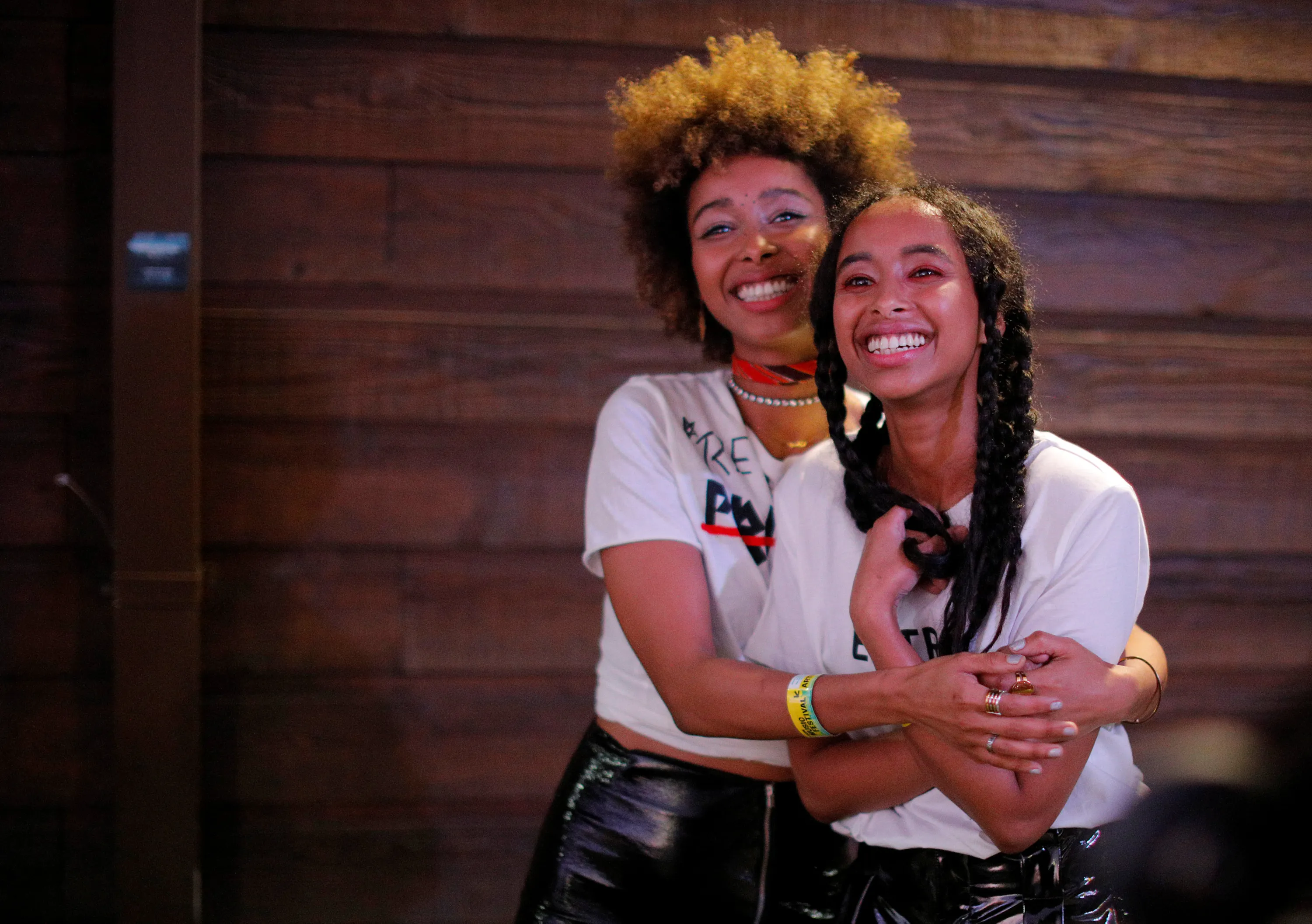 The Somali-Canadian sister group Faarrow listen as they are introduced at the “ContraBanned” showcase featuring artists representing countries included in U.S. President Donald Trump's executive order travel bans, at the South by Southwest (SXSW) Music Film Interactive Festival 2017 in Austin, Texas, U.S. March 17, 2017. (Photo by Brian Snyder/Reuters)