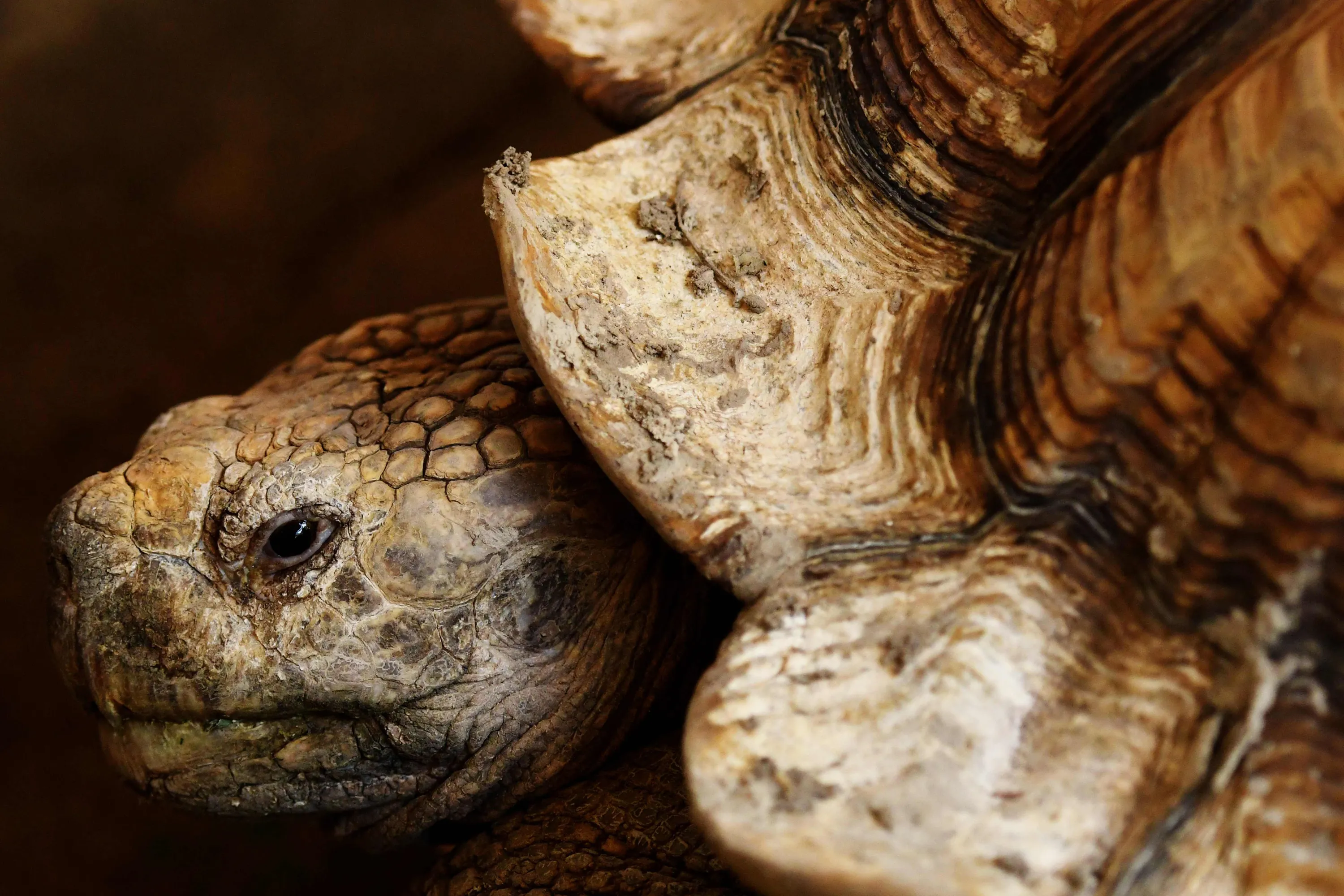 One of the two African spurred tortoises (Centrochelys sulcata) donated by the Salvadorean Arauca breeding farm is pictured during their presentation at the National Zoo of El Salvador in San Salvador, on March 20, 2017. (Photo by Marvin Recinos/AFP Photo)