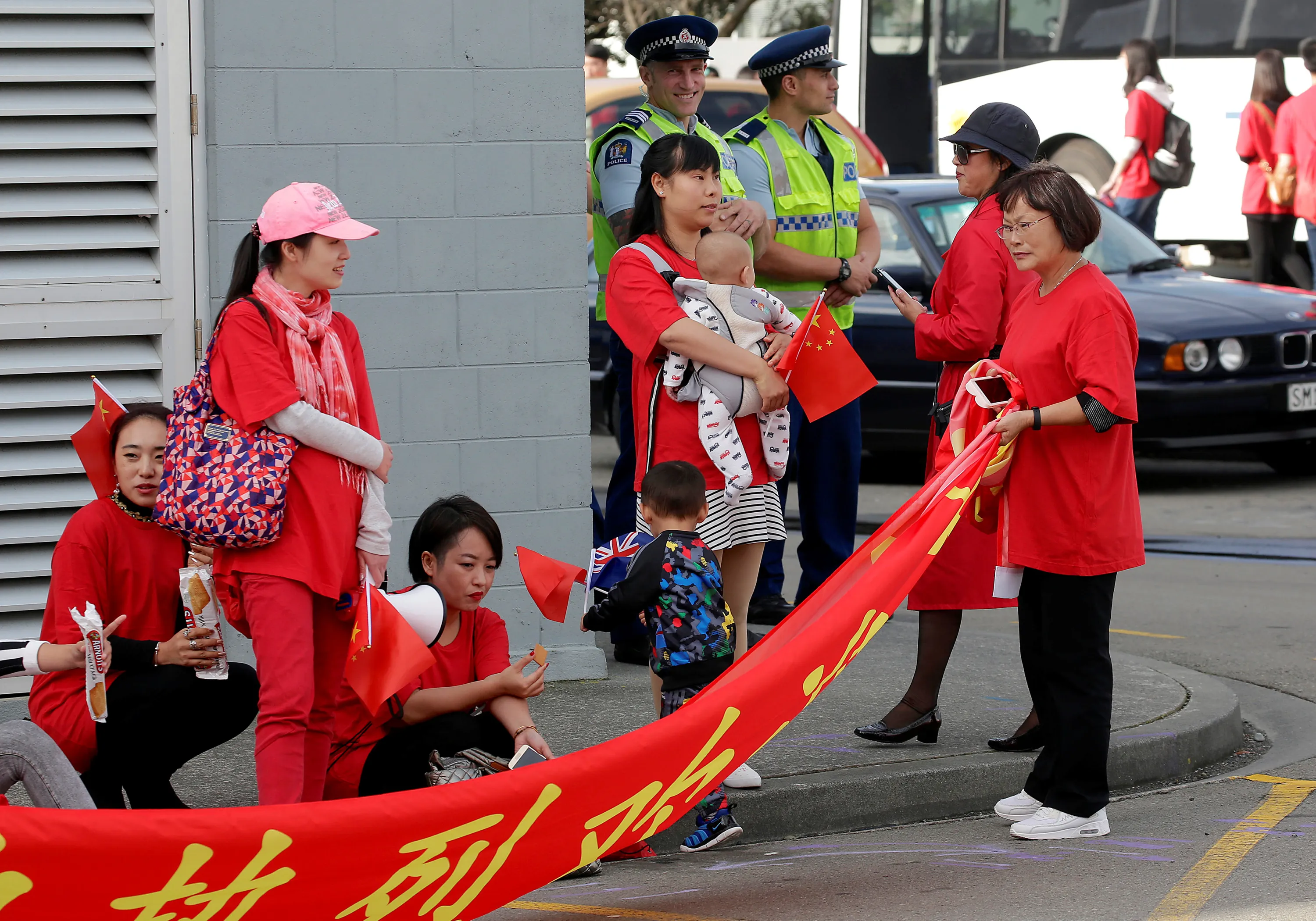 Police stand near members of the Chinese community as they wait for the arrival of Chinese Premier Li Keqiang in Wellington, New Zealand, March 26, 2017. (Photo by Anthony Phelps/Reuters)