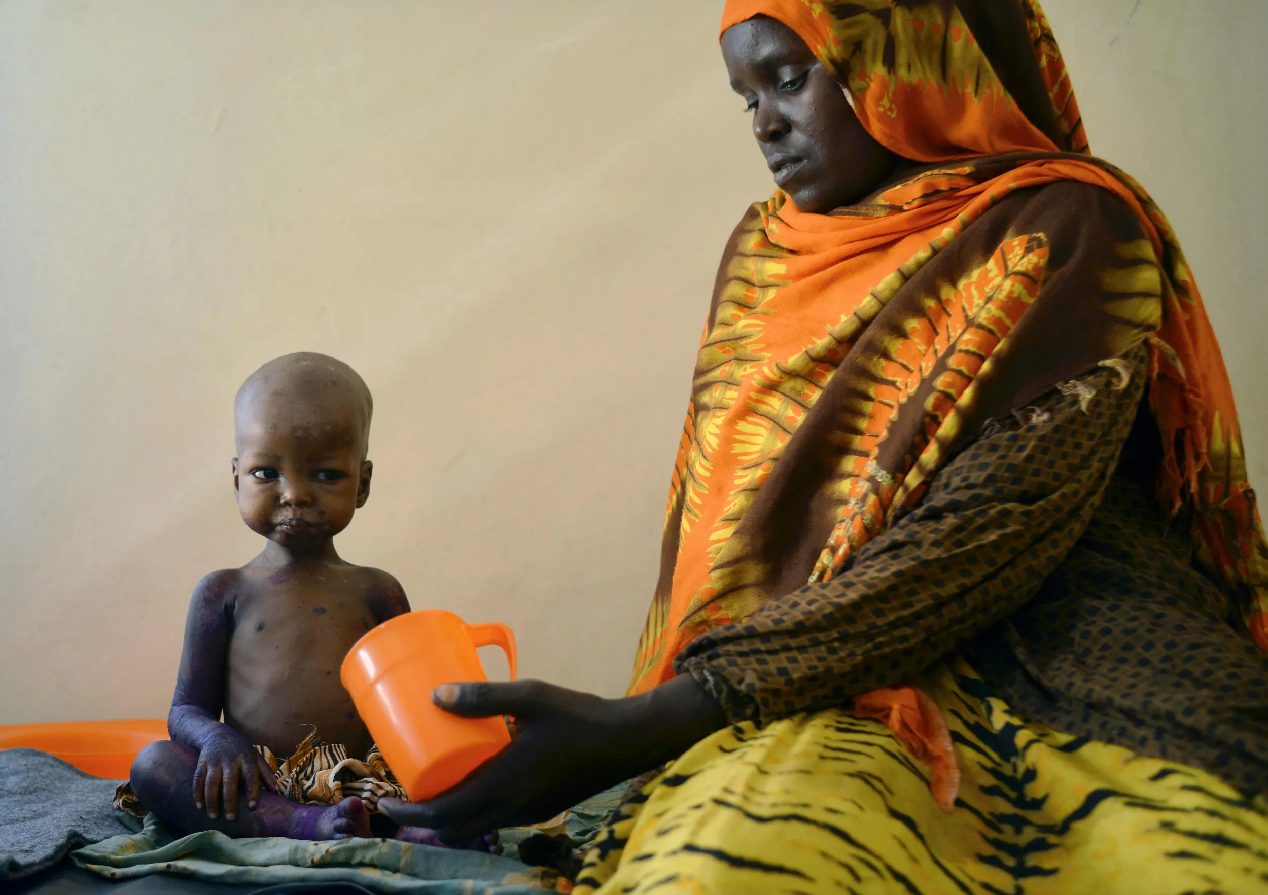 A malnourished child is fed a special formula by her mother at a regional hospital in Baidoa town, the capital of Bay region of south-western Somalia where severe cases of malnourishment and cholera are reffered by a UNICEF- funded health programme for children and adults displaced by drought on March 15, 2017. (Photo by Tony Karumba/AFP Photo)