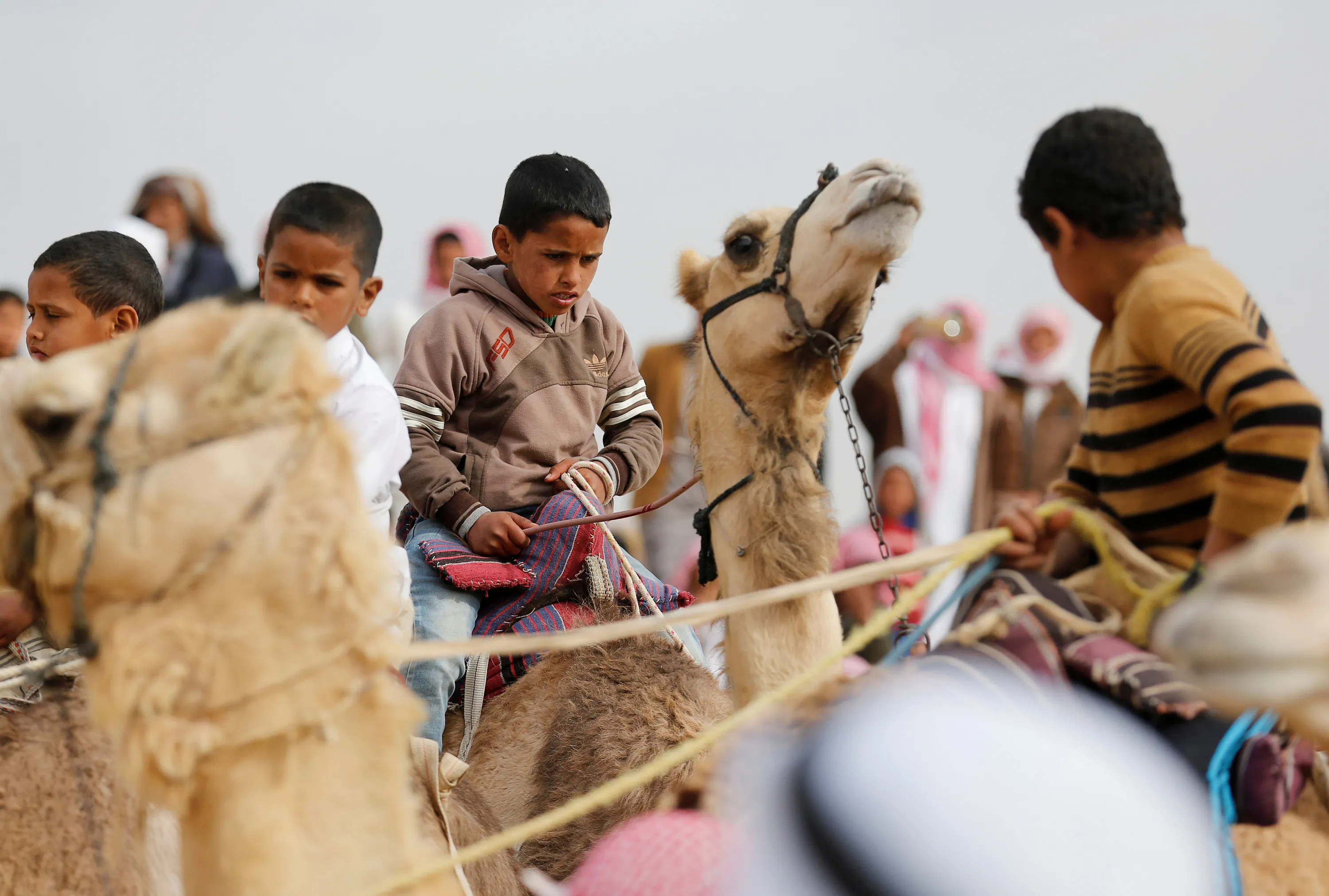 Jockeys, most of whom are children aged 11 or under, ride their mounts as they prepare to compete in the International Camel Racing festival at the Sarabium desert in Ismailia, Egypt, March 21, 2017. (Photo by Amr Abdallah Dalsh/Reuters)