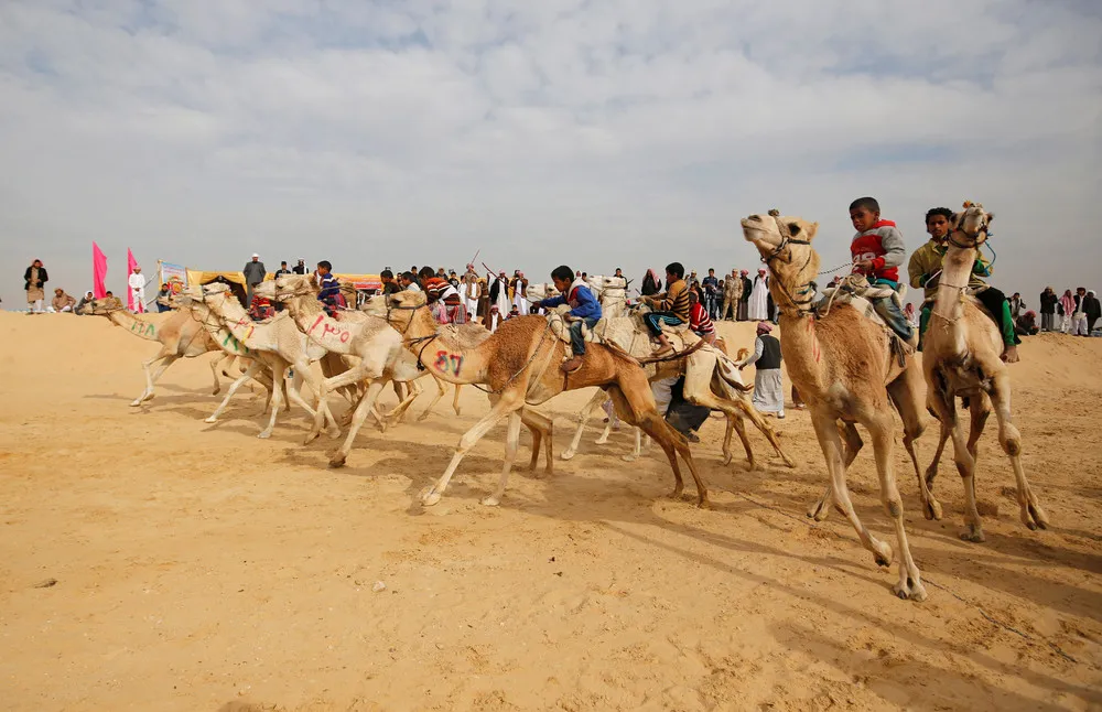 Jockeys, most of whom are children, compete on their mounts at the starting line during the opening of the International Camel Racing festival at the Sarabium desert in Ismailia, Egypt, March 21, 2017. (Photo by Amr Abdallah Dalsh/Reuters)