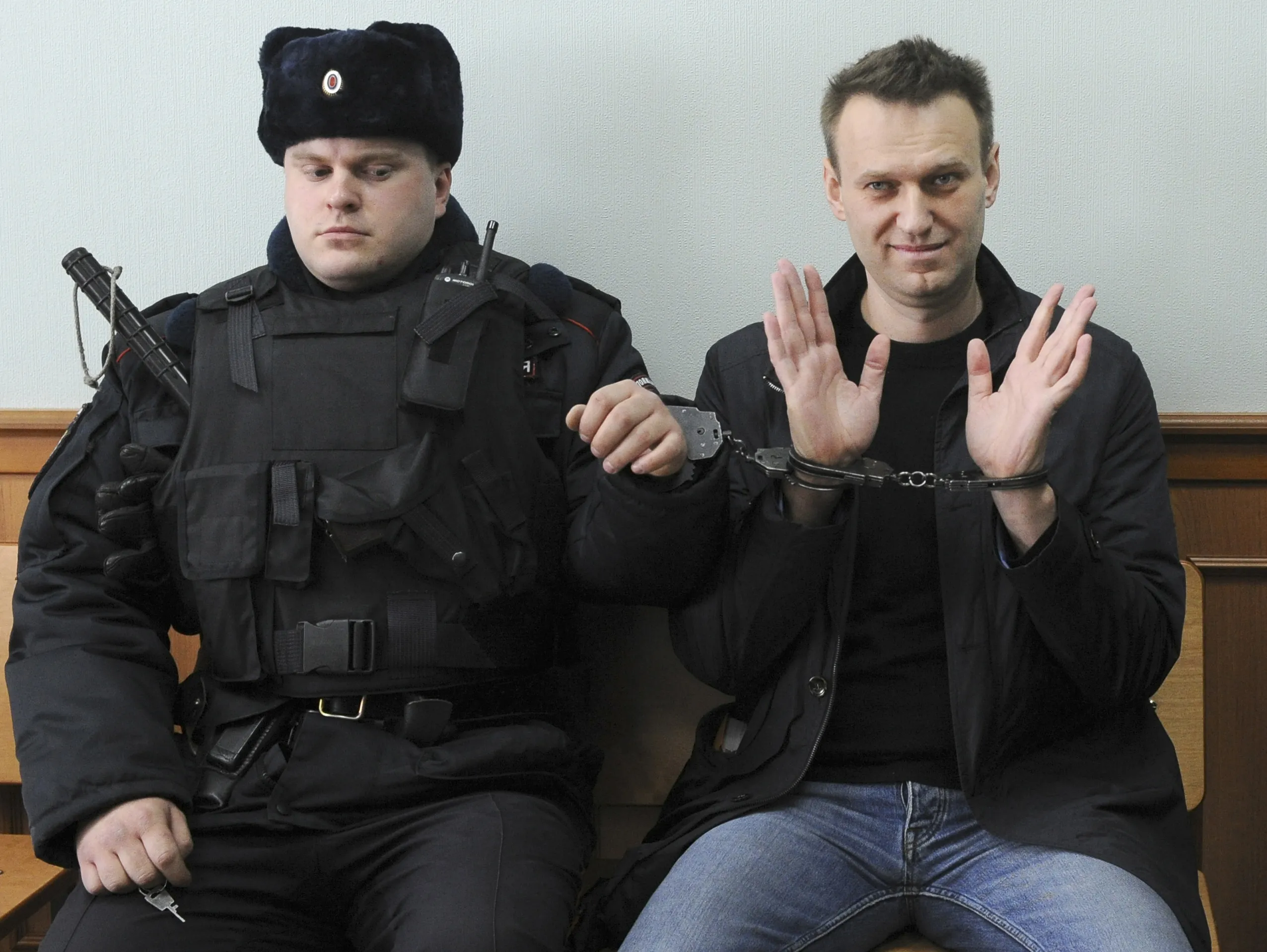 Russian opposition leader Alexei Navalny, right, poses for press in court in Moscow, Russia, Thursday, March 30, 2017. Navalny attends a court hearing on his appeal. Navalny, who organized a wave of nationwide protests against government corruption was sentenced to 15 days in jail. (Photo by AP Photo)