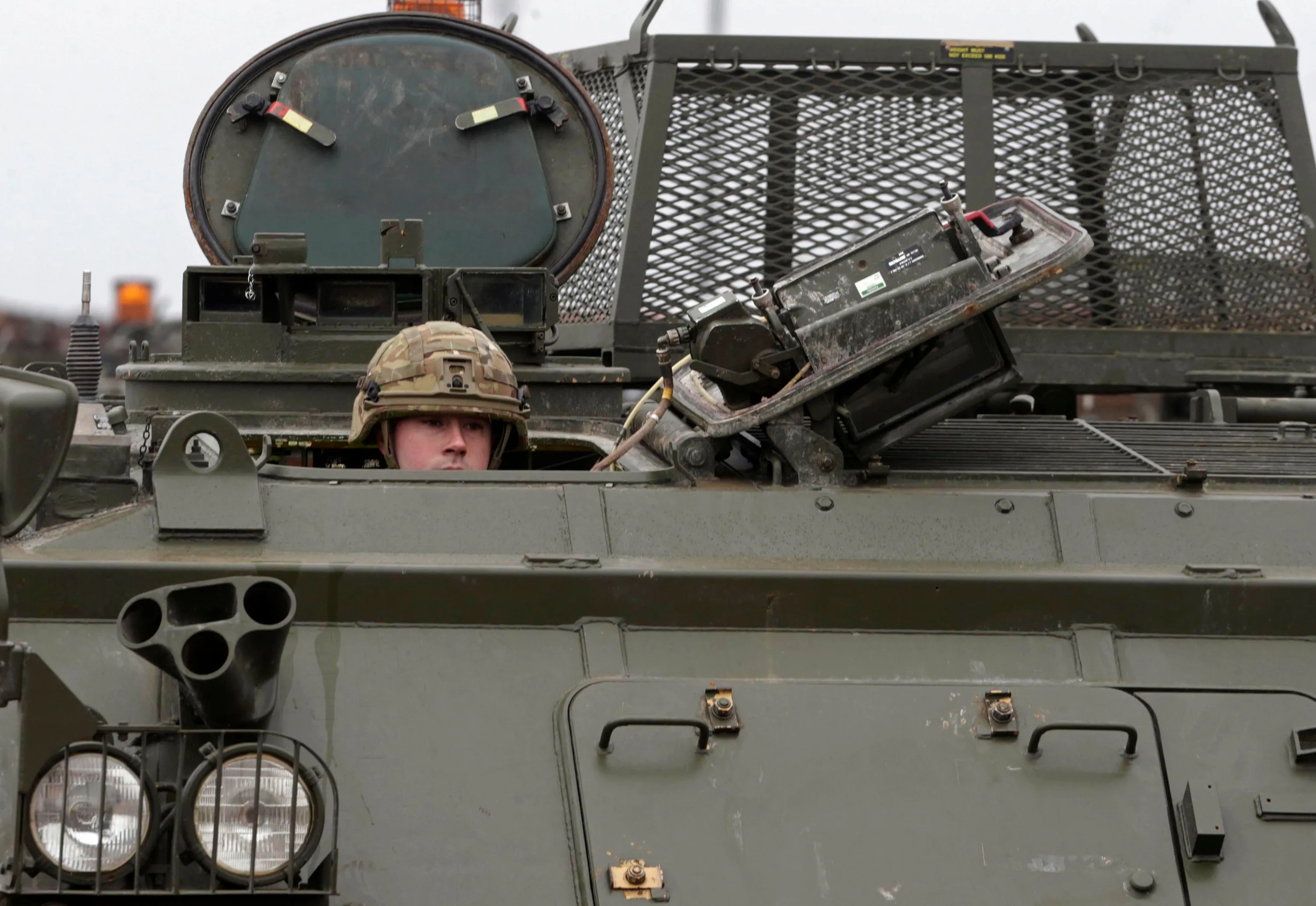 British army soldier drives his FV430 troop carrier (Bulldog) in Paldiski port, Estonia, April 5, 2017. (Photo by Ints Kalnins/Reuters)