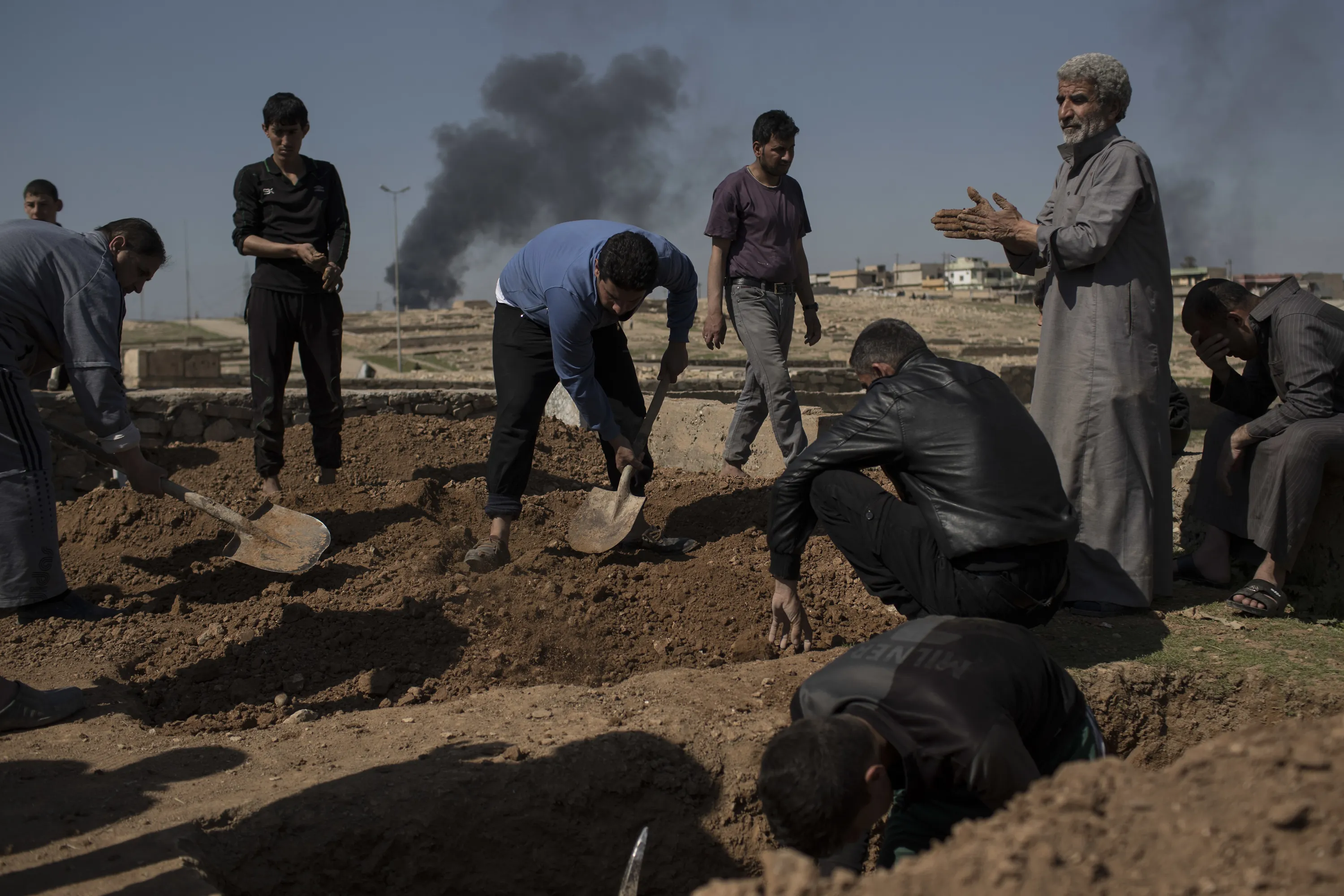 Relatives and friends bury the body of Khadeer Hassan, who was killed during fighting between Iraqi security forces and Islamic State militants, on the western side of Mosul, Iraq, Saturday, March 25, 2017. (Photo by Felipe Dana/AP Photo)