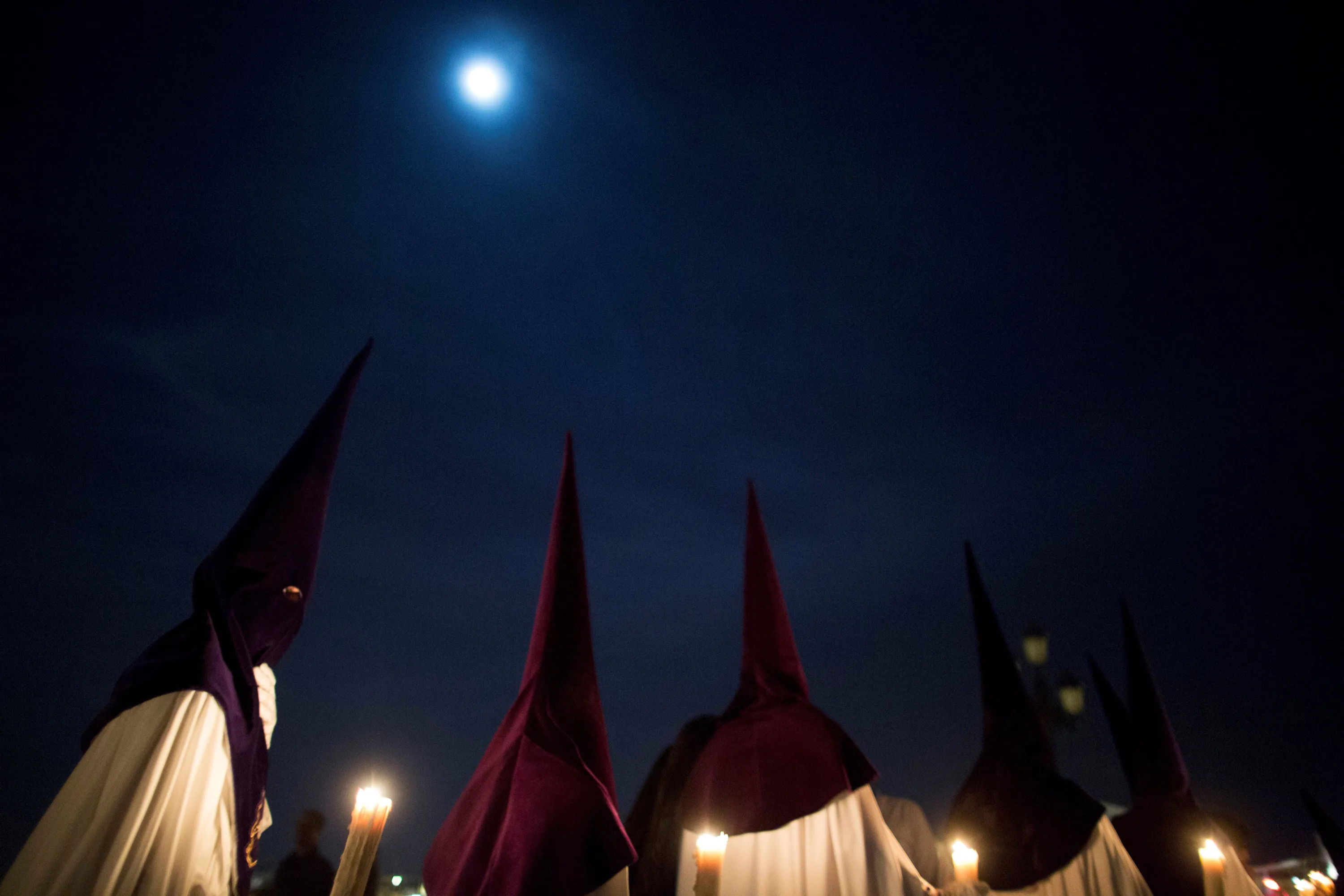 Penitents of “La Estrella” (The Star) brotherhood take part in a procession during Holy Week in the Andalusian capital of Seville, southern Spain April 10, 2017. (Photo by Jesus Moron/Reuters)