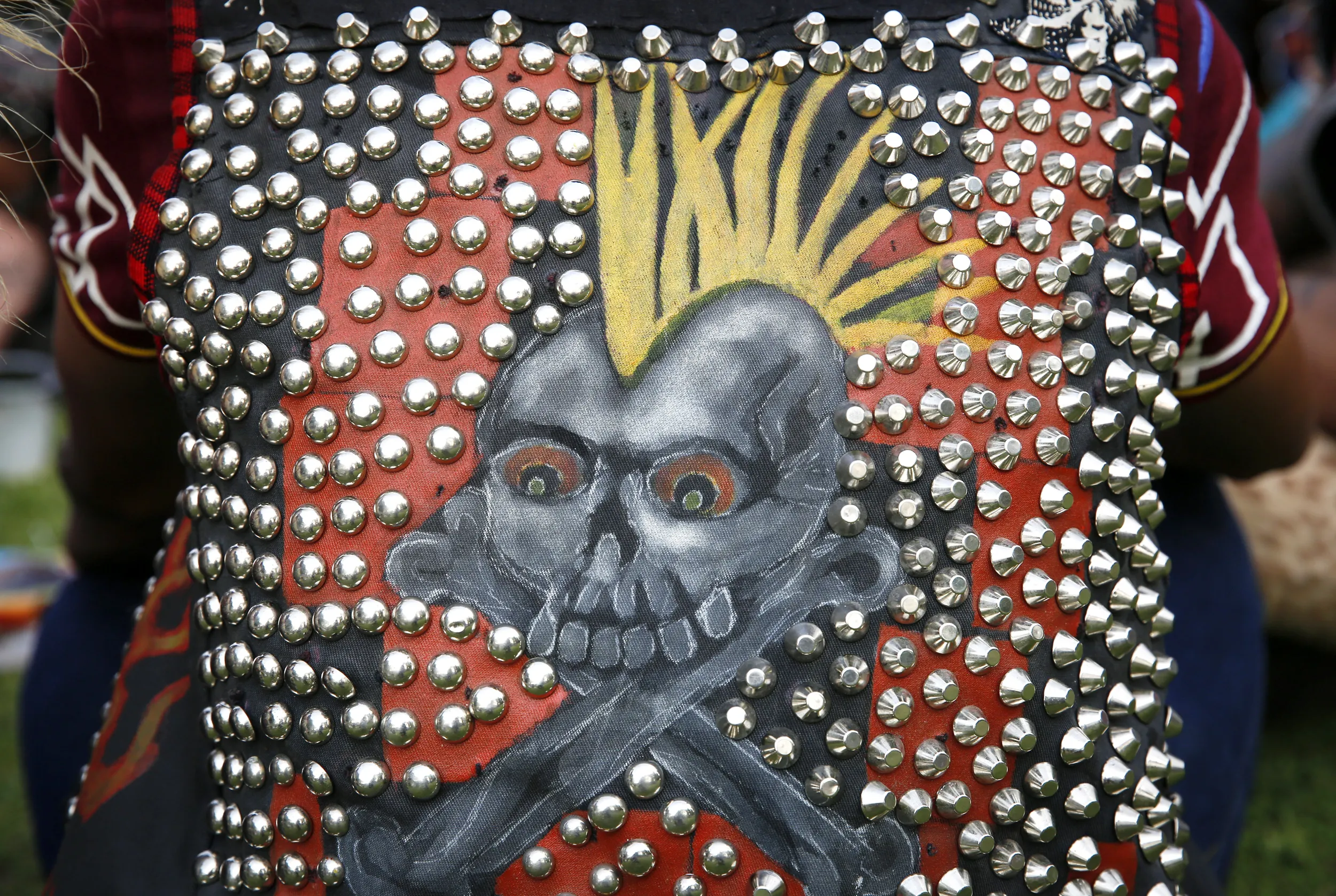 A Myanmar punk wearing a customized decorated jacket takes part in a punk gathering ahead of the Thingyan water festival in Yangon, Myanmar, 12 April 2017. (Photo by Lynn Bo Bo/EPA)