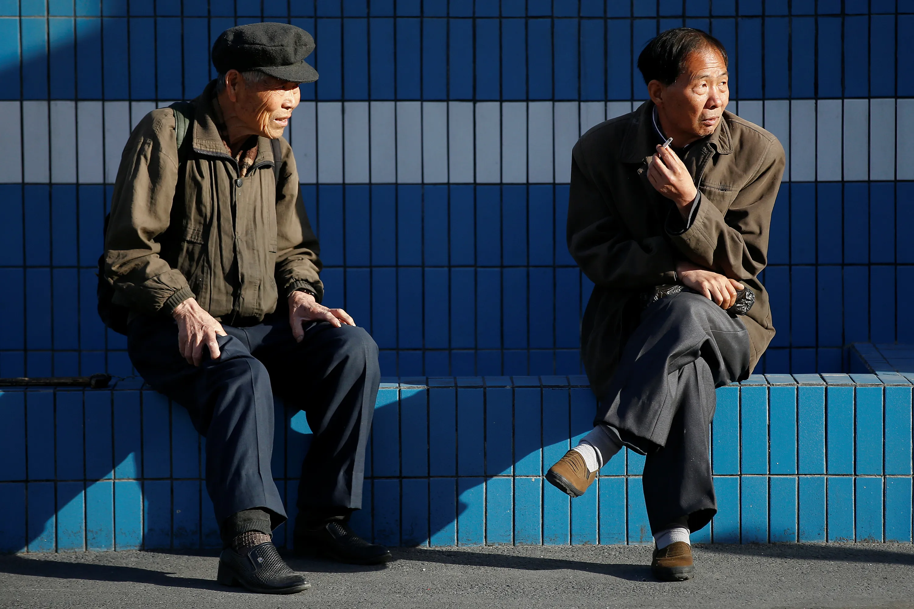 People chat in central Pyongyang, North Korea April 12, 2017. (Photo by Damir Sagolj/Reuters)