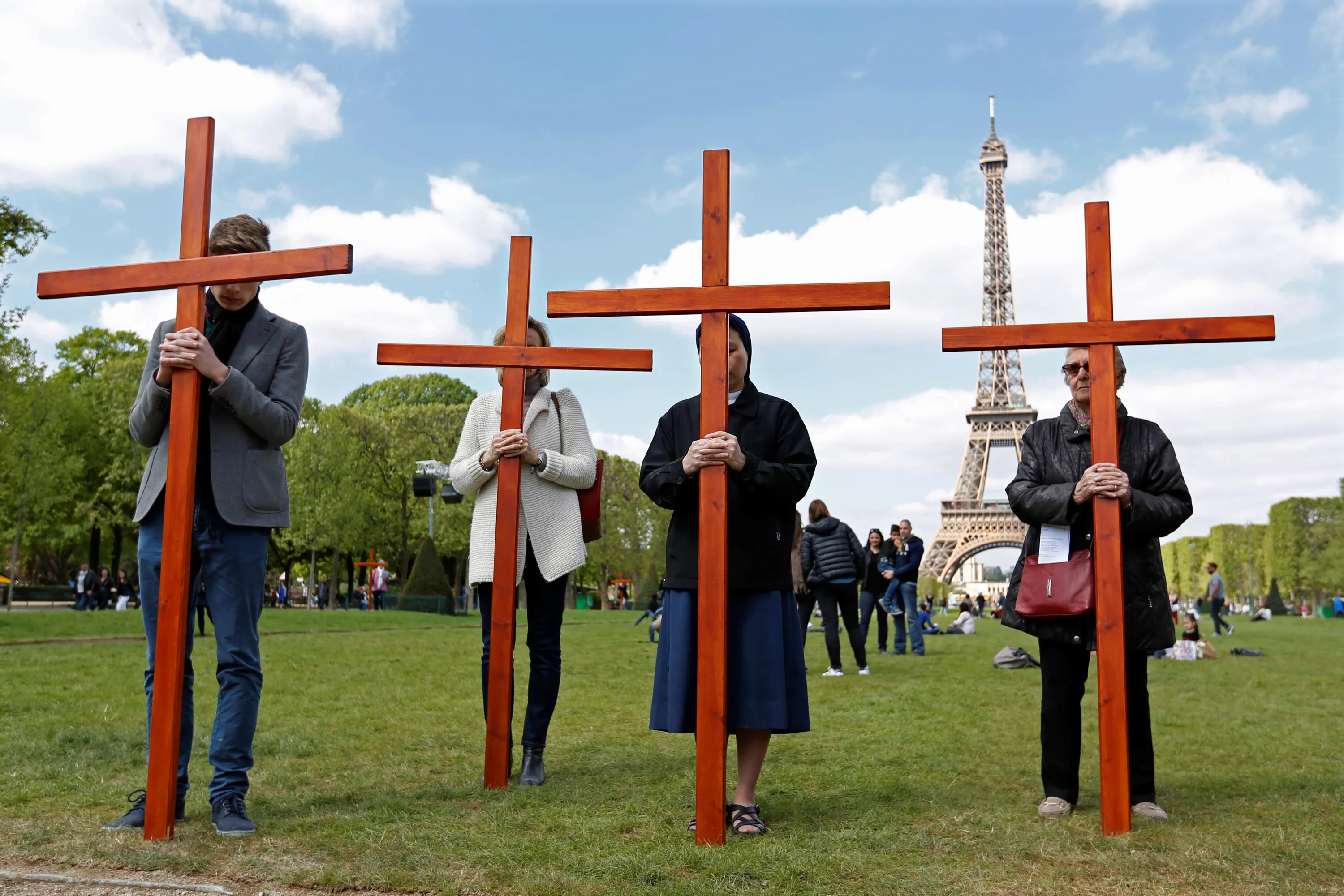 Pilgrims attend the annual Good Friday “Stations of the Cross” procession at the Champs de Mars near the Eiffel Tower in Paris, France, April 14, 2017. (Photo by Charles Platiau/Reuters)
