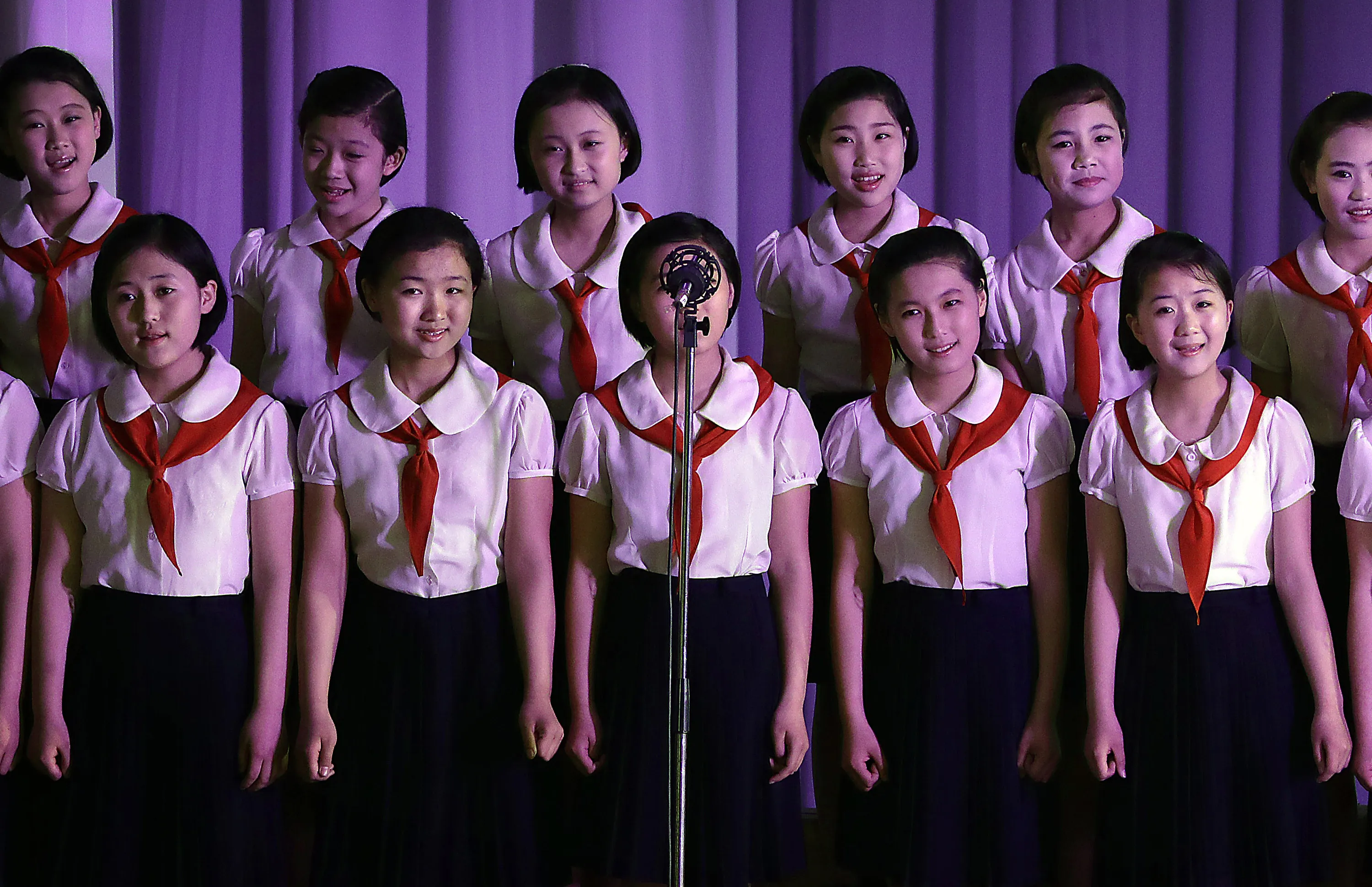 North Korean sing at the Mangyongdae Children's Palace on Friday, April 14, 2017, in Pyongyang, North Korea. (Photo by Wong Maye-E/AP Photo)