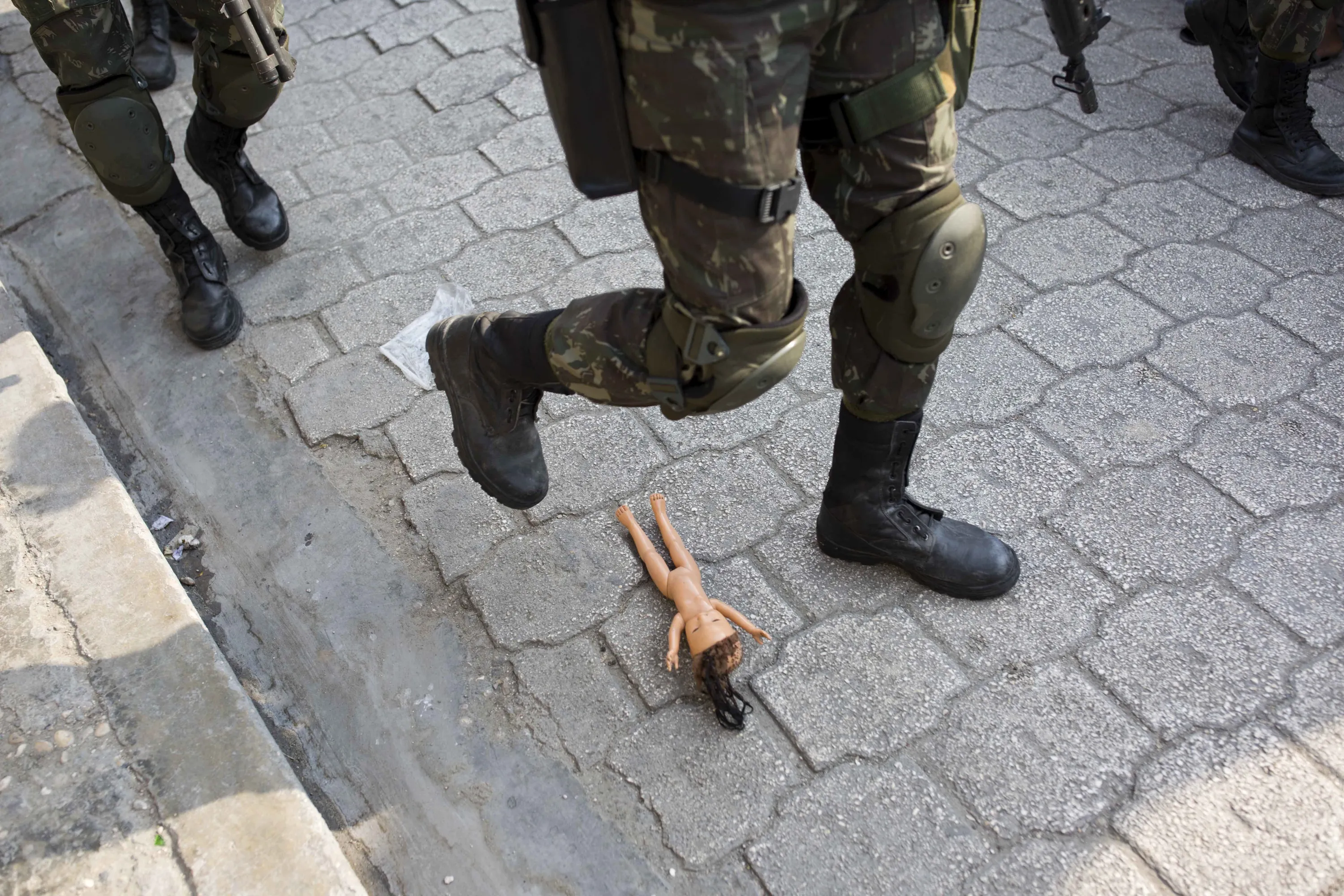 In this February 22, 2017 photo, a U.N. peacekeeper from Brazil sidesteps an abandoned doll left on a street of the Cite Soleil slum in Port-au-Prince, Haiti. The peacekeepers have earned praise for boosting security, paving the way to elections and providing crucial support after disasters. But some troops have also been accused of excessive force, rape and abandoning babies they fathered. (Photo by Dieu Nalio Chery/AP Photo)