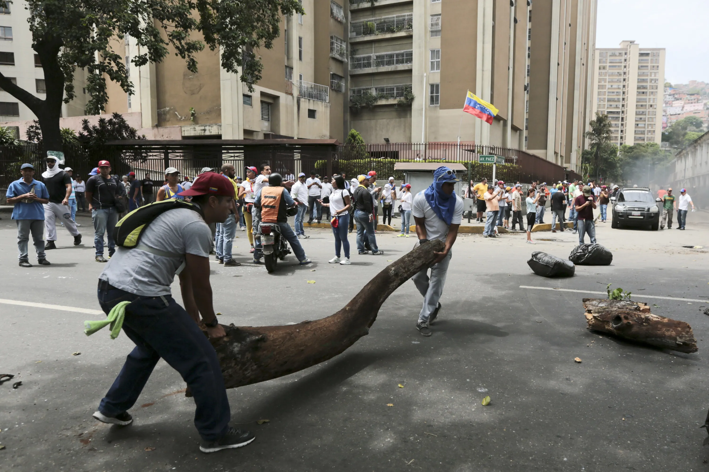 Opposition members set up a barricade during a protest in Caracas, Venezuela, Wednesday, April 19, 2017. (Photo by Fernando Llano/AP Photo)