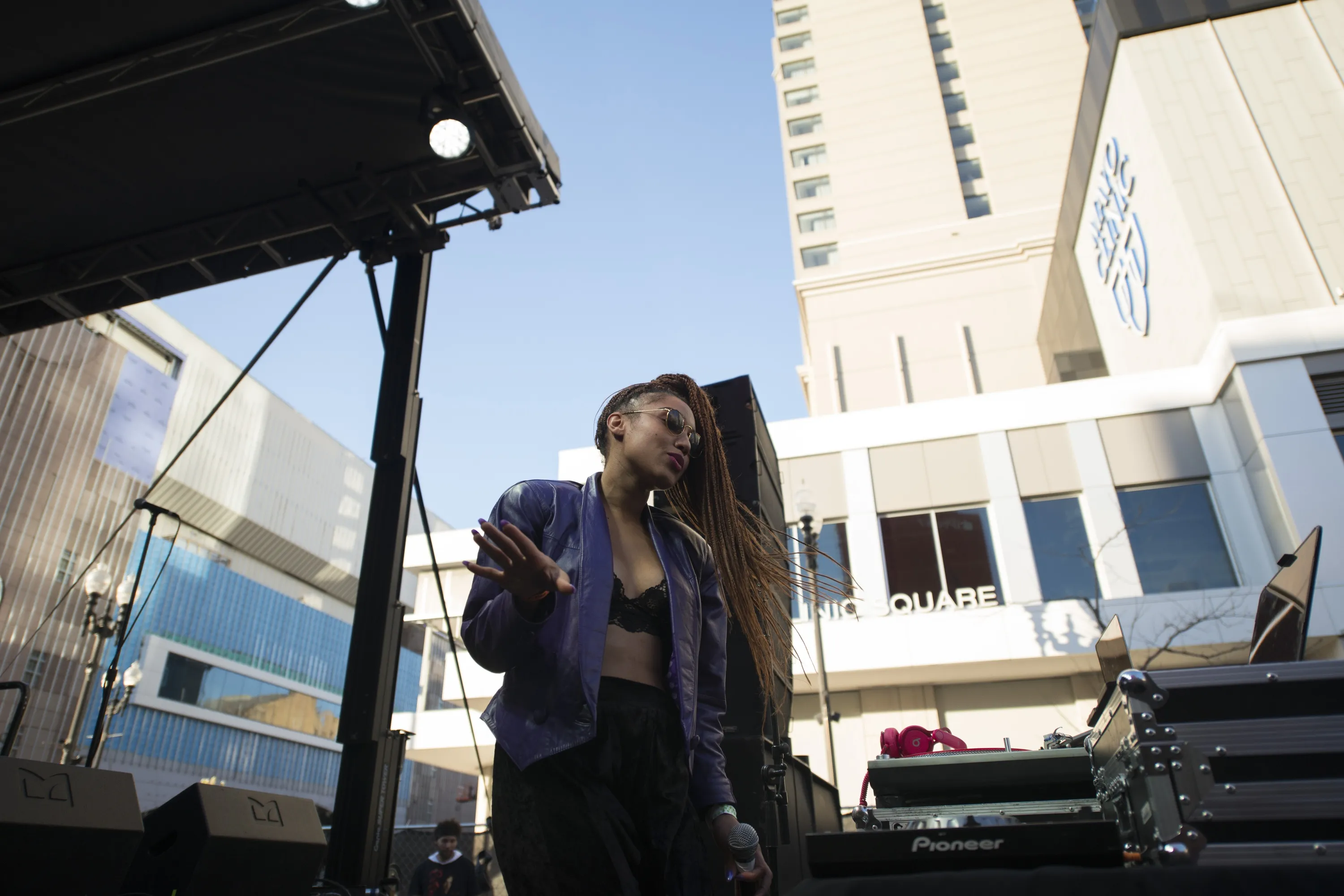 DJ Sophia Eris performs at the Prince Memorial Street Party on April 22, 2017 in Minneapolis, Minnesota. First Avenue nightclub arranged the event outside the venue to commemorate one year since the death of Prince. (Photo by Stephen Maturen/Getty Images)