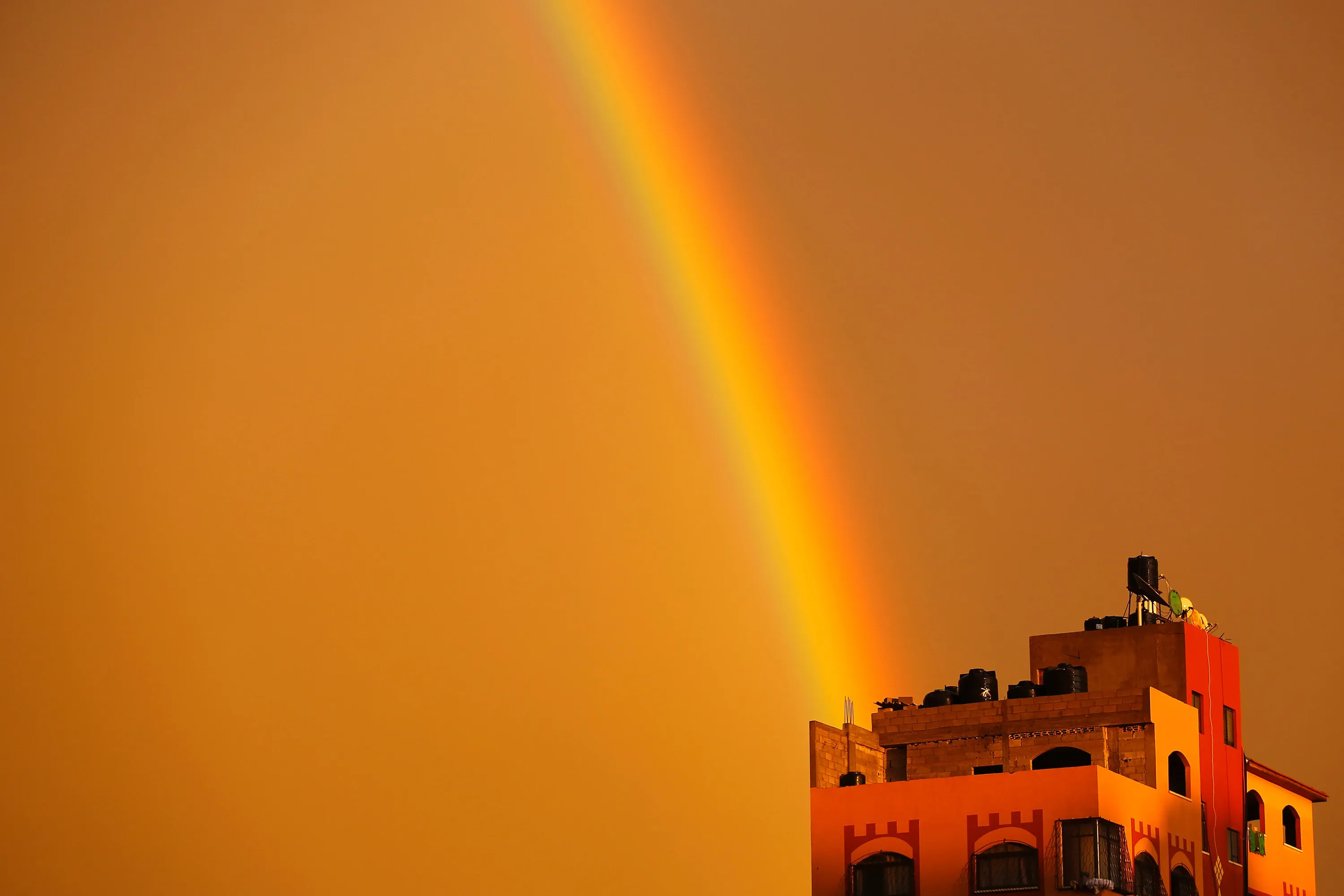 A picture taken on February 15, 2017 shows a rainbow appearing over Gaza City. (Photo by Mohammed Abed/AFP Photo)