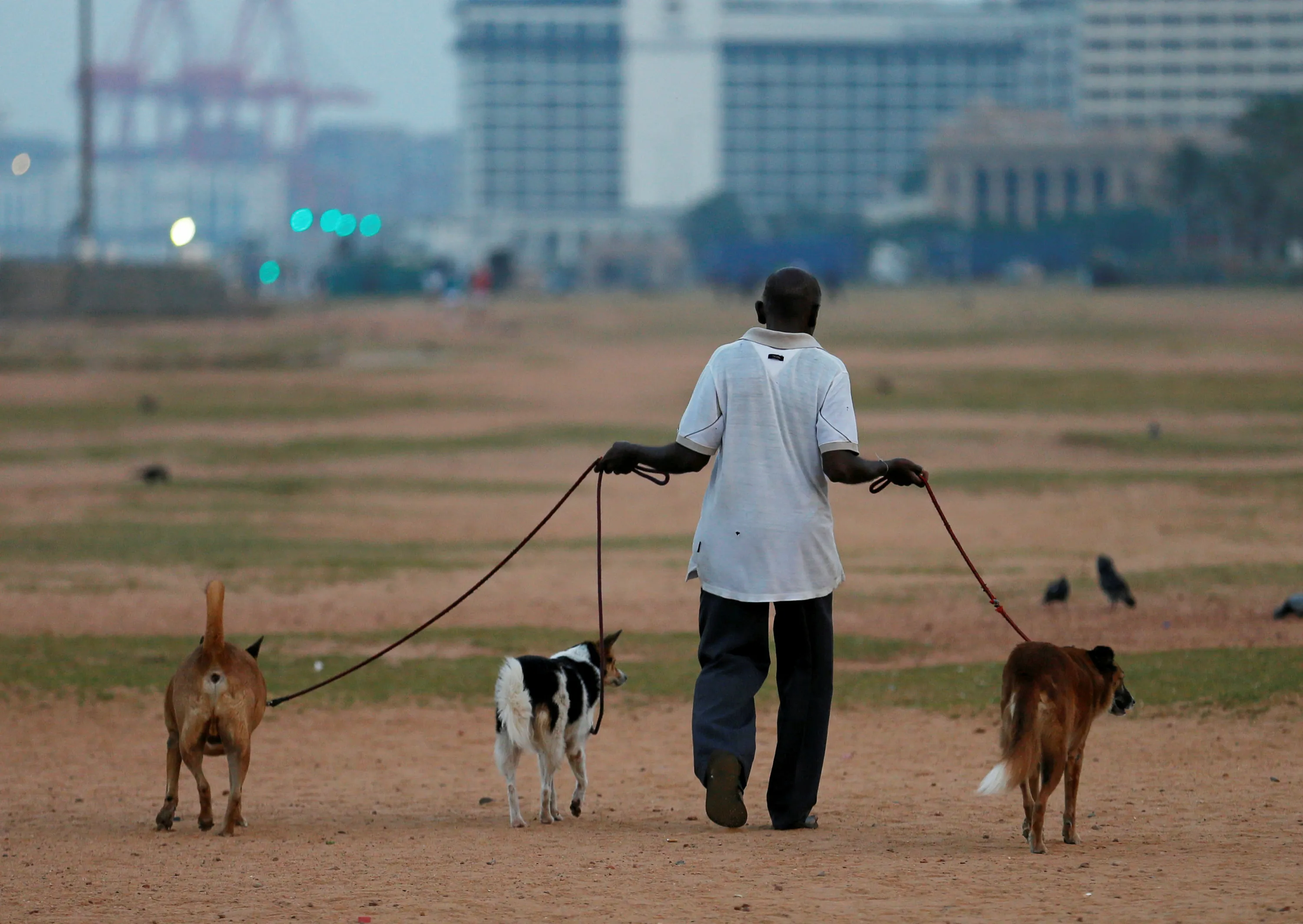 A man walks his dogs along the Galle Face Green on the early morning in Colombo, Sri Lanka January 18, 2017. (Photo by Dinuka Liyanawatte/Reuters)